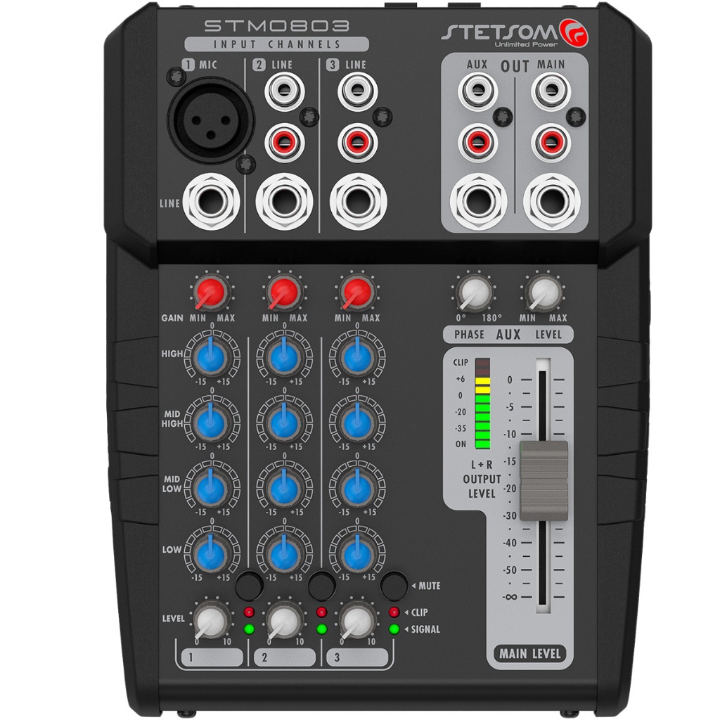 Mesa de Som Automotiva Stetsom STM0803 3 Canais Mixer Equalizador 4 Bandas 12V Profissional