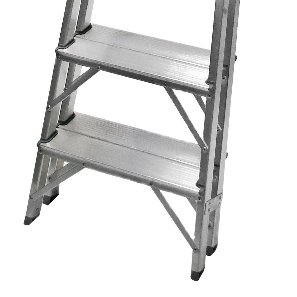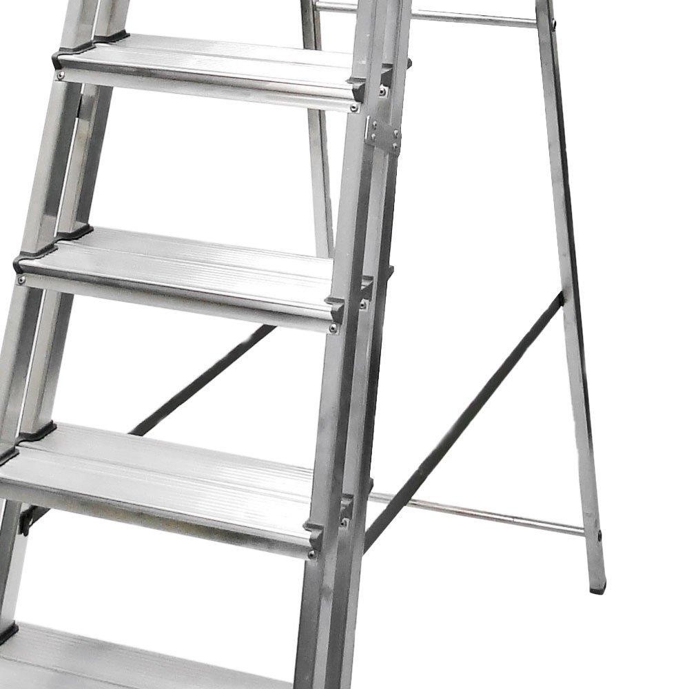 Escada Dupla em Alumínio 8 Degraus 2,18m Suporta até 120kg Pés Antiderrapantes - Reisam