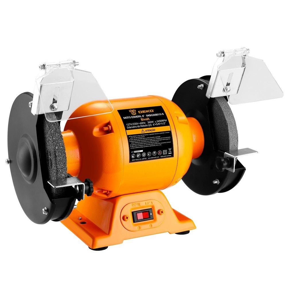 Moto Esmeril Bancada 6" Polegadas Potência 360W Bivolt 2 Rebolos 60Hz - Deko