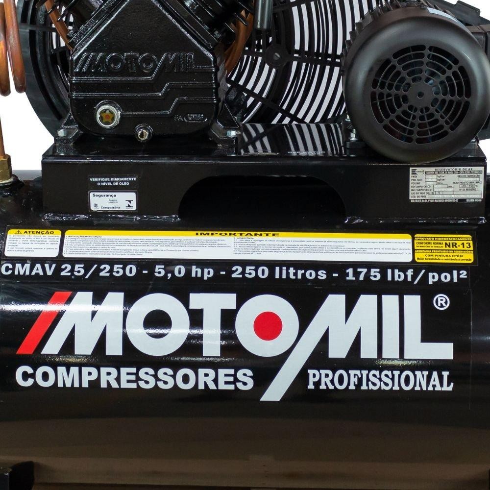Compressor Ar 20 Pés 250L 175LBS Trifásico 220/380V Motomil