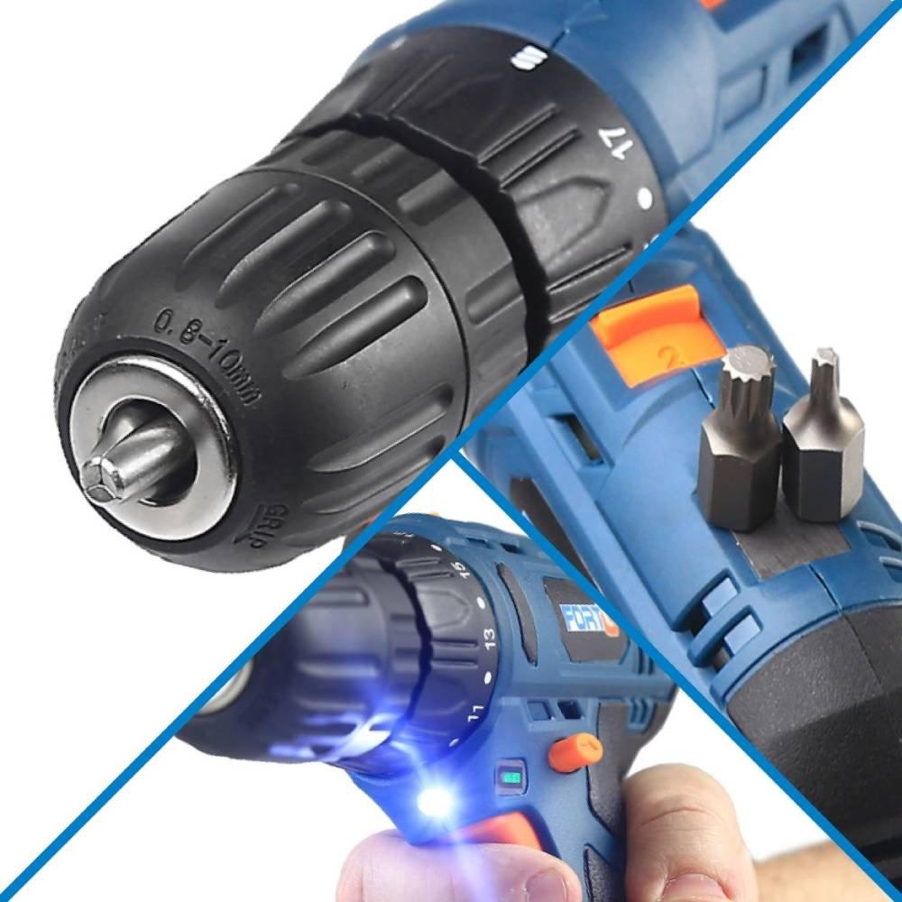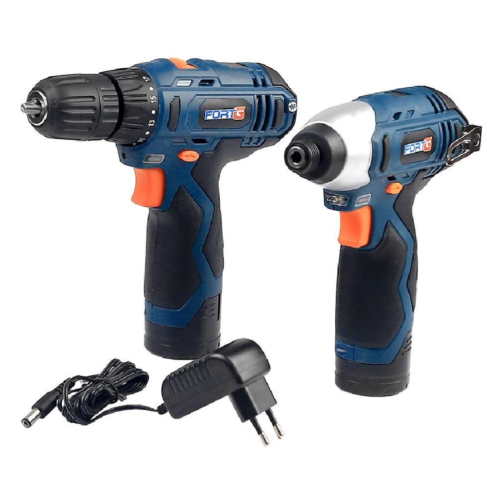 Parafusadeira de Impacto 1/4" Polegadas + Parafusadeira/Furadeira Bateria Bivolt 12V Maleta - FortG