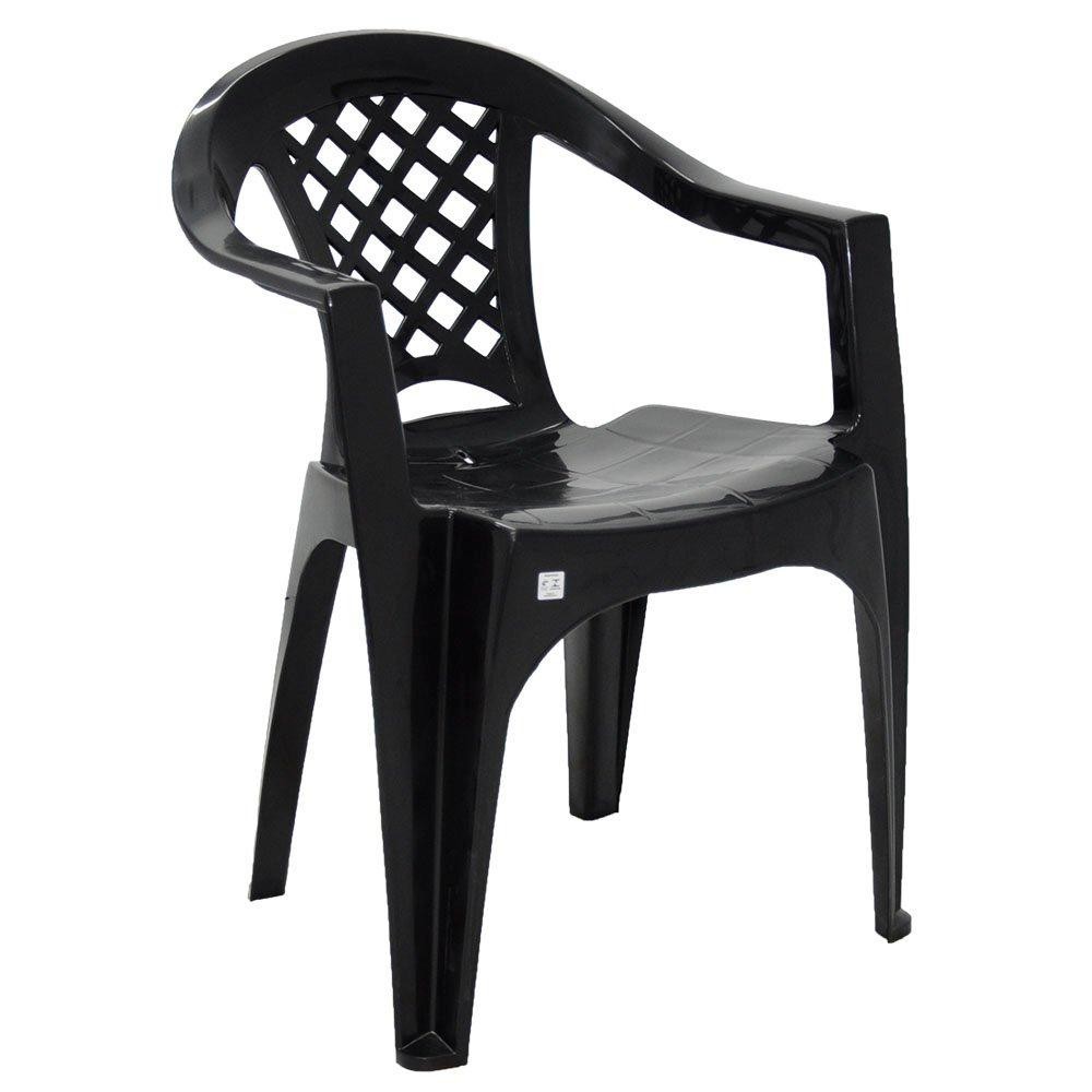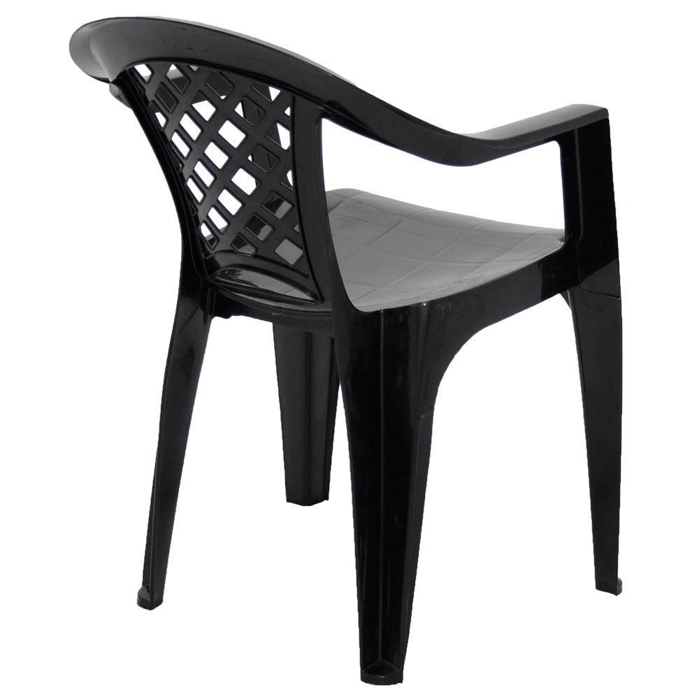 Cadeira Iguape Preta com Braços Suporta 154kg Piscina Praia Camping - Tramontina