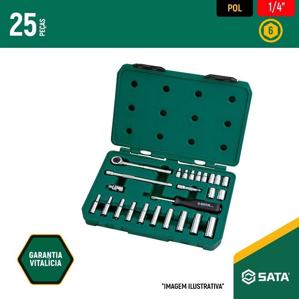 Jogo de Soquetes Sextavados 1/4 pol. 25 Peças - em Polegadas