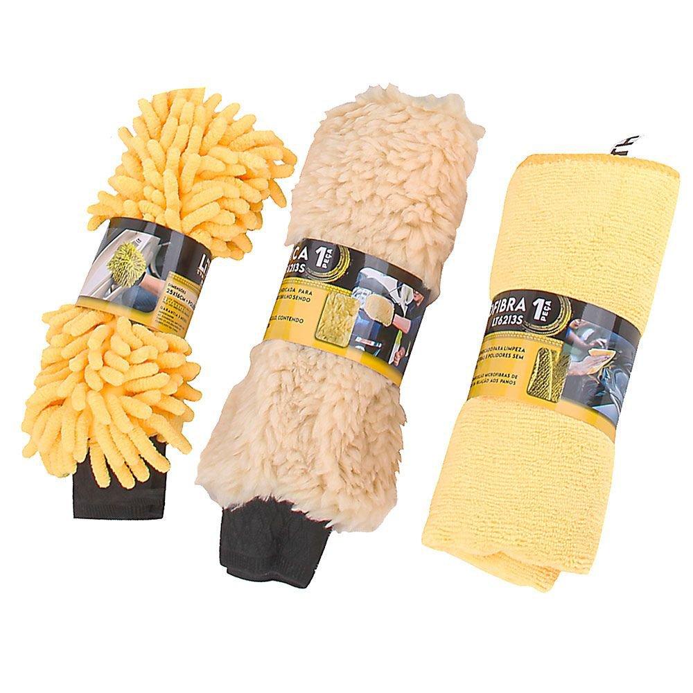 Jogo de Limpeza Estética Automotiva Multiuso com 10 Peças Microfibra Nylon - Lith