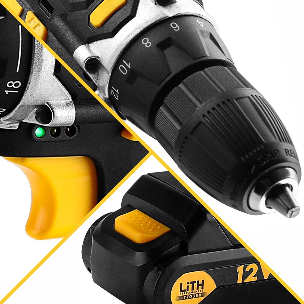Parafusadeira Furadeira Impacto 3.8" Polegadas 60Hz Bateria 12V Bivolt Maleta Acessórios - Lith