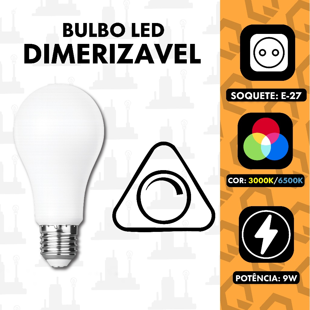 Lampada Bulbo Led Dimerizavel 9W E27 Branco Quente 3000K/ Frio 6500K BIVOLT