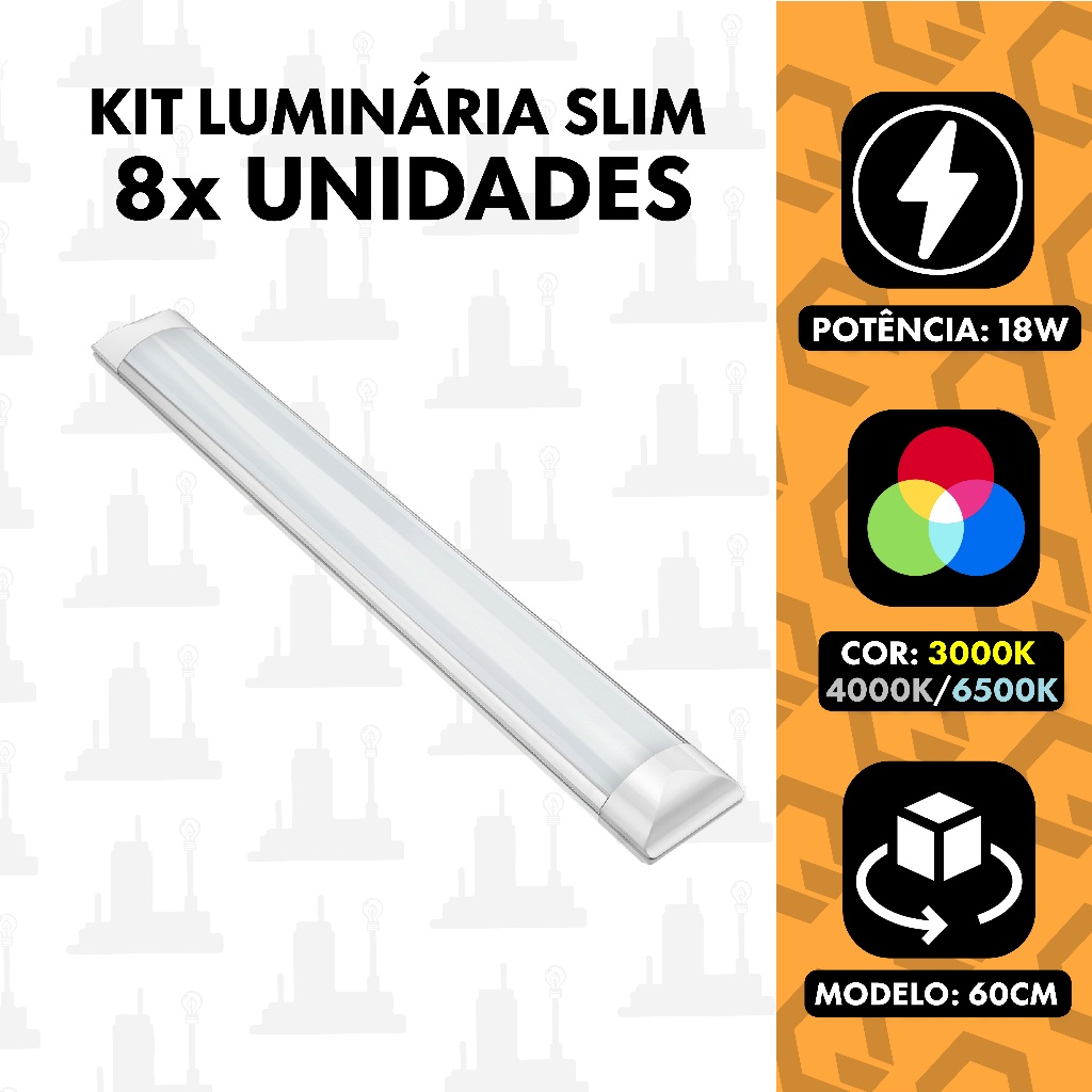 kit 8un 18w Luminária Slim Linear Led 60cm branco/ amarelo/ neutro Tubular slim Sobrepor