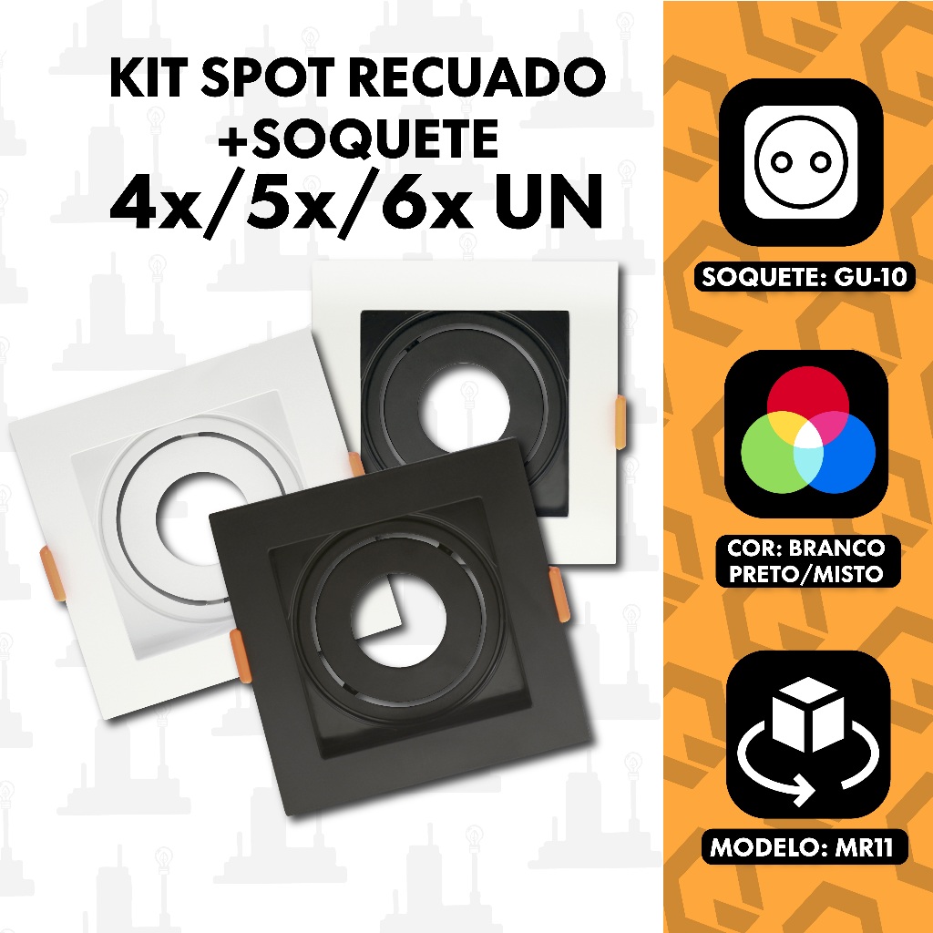 Kit 4un, 5un e 6un Spot Recuado Para Dicroica Mr11 com Soquete gu10 Embutir Quadrado