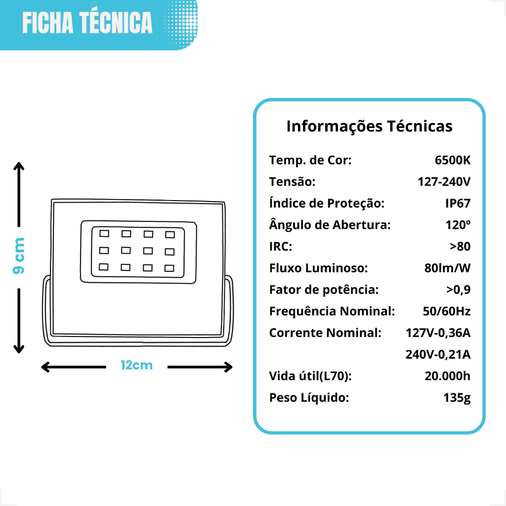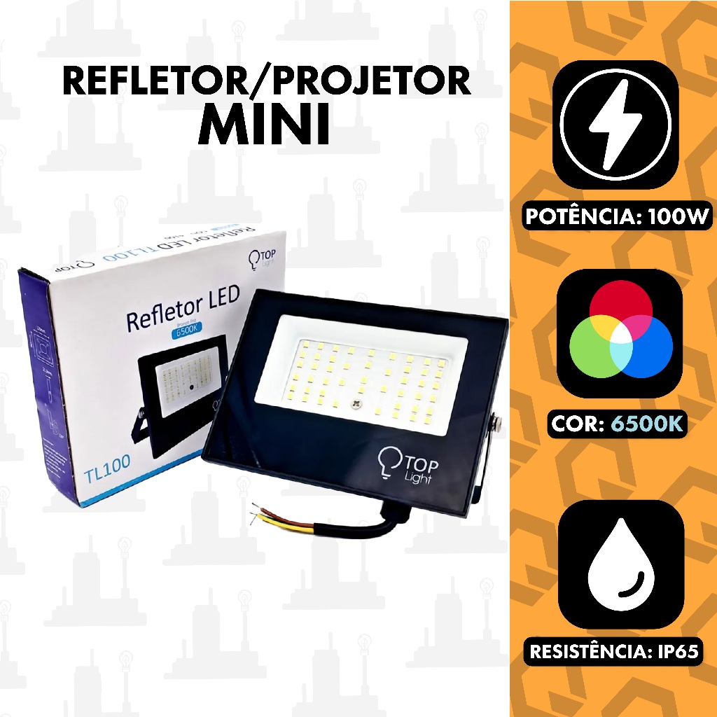Refletor 100W Mini Branco Frio 6500k Projetor Led Holofote a Prova D'agua IP65 Top Light