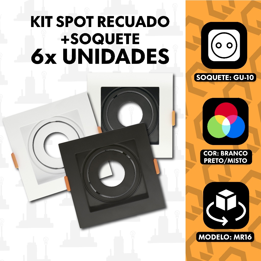 Kit 6 Spot Recuado Para Dicroica Mr16 com Soquete gu10 Embutir Quadrado