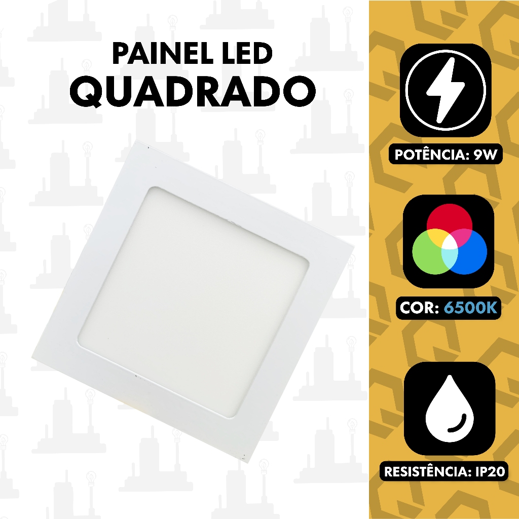 Luminaria Painel Led Aluminio 9w 15x15cm Embutir Quadrado Branco 6500k Plafon Bivolt