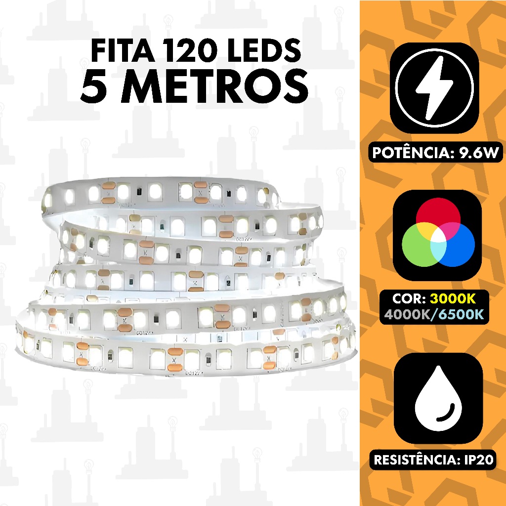 Fita Led 120 leds/m Ip20 12v 2835 Para Perfil Branco Quente/Neutro/Frio 5M Sem Fonte Apollo