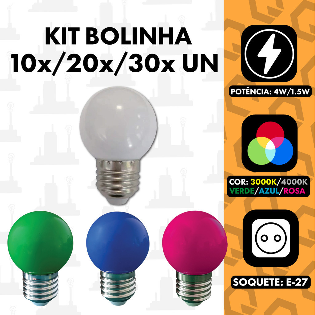 kit 10un / 20un / 30un lampada led bolinha g-45 1.5w/4w 3000K 6500K Verde, Rosa, Azul