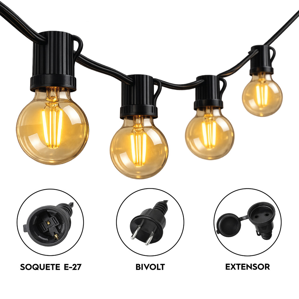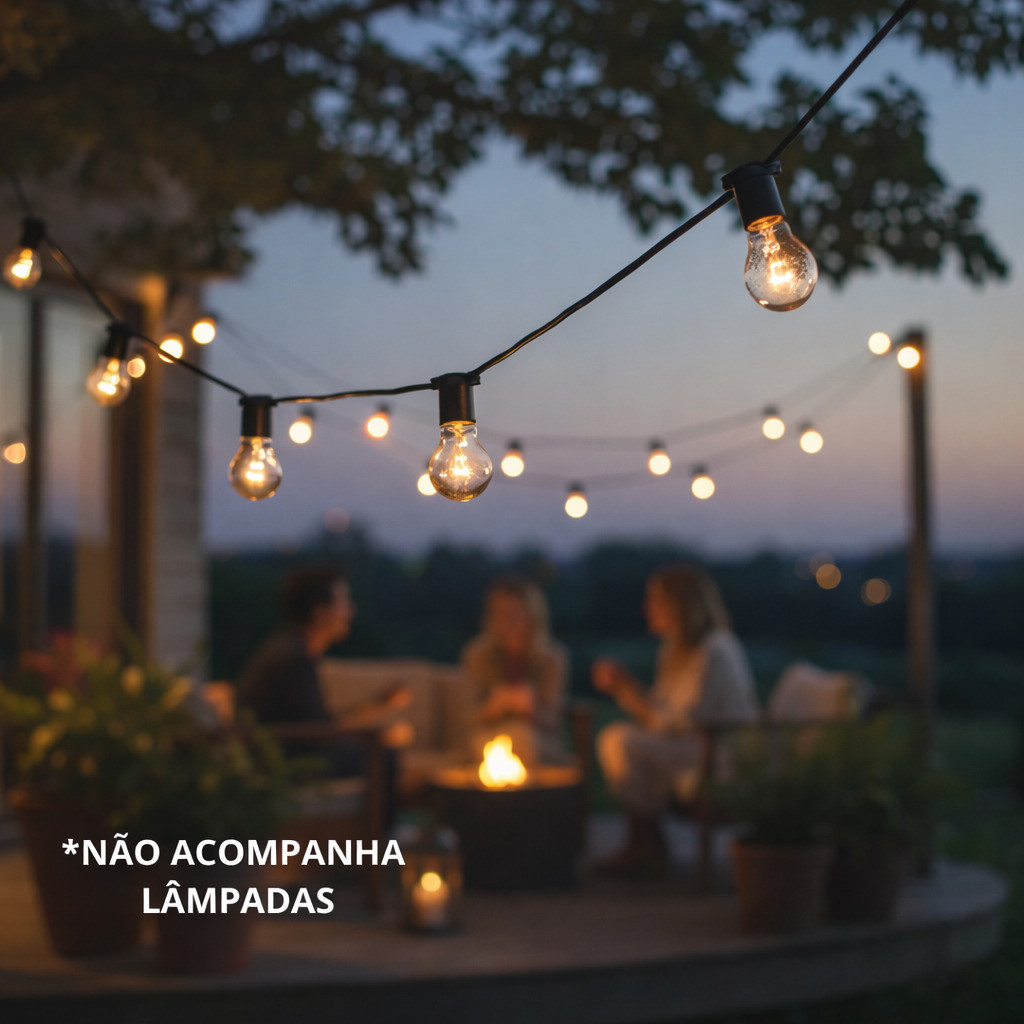 Kit 3un Varal Completo 10 Soquetes E-27 10 Metros de Cordão De Luz Externo S/lâmpadas