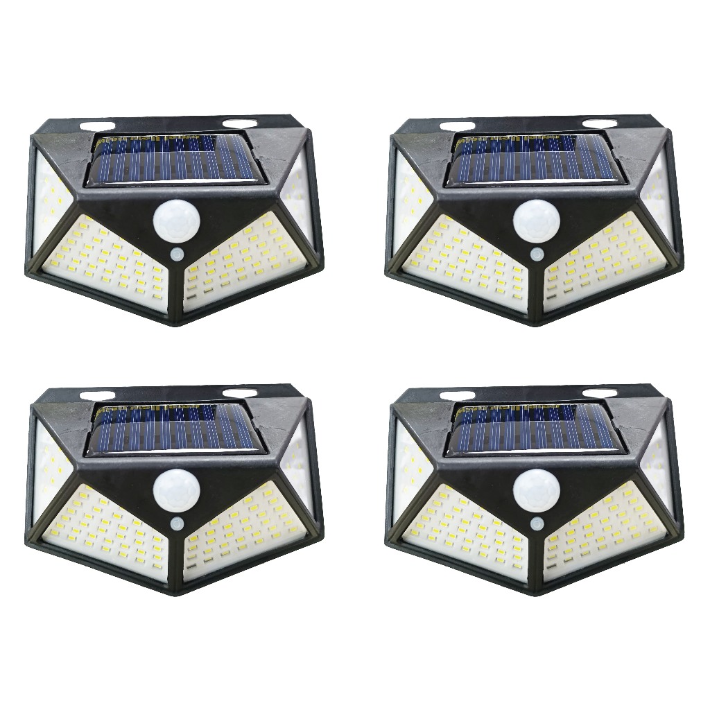 kit 4 Luminária Solar Parede 100 Leds Sensor Presença Com 3 Funções Refletor Arandela Lâmpada