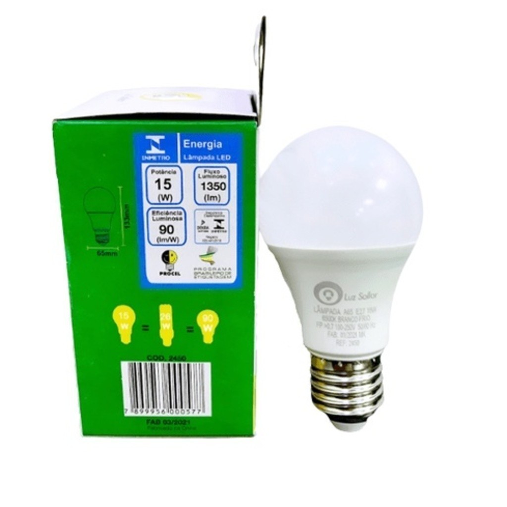 Kit 5un Lampada Bulbo Led 15w A60 4000k 6500k BIVOLT E27