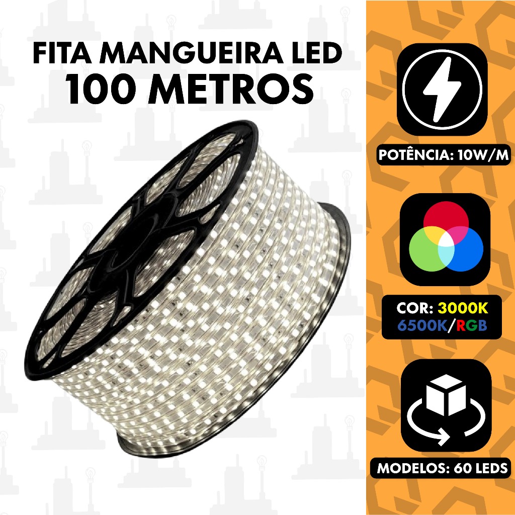 Fita Mangueira Led 100 Metros 220v + Fonte de Alimentação IP65