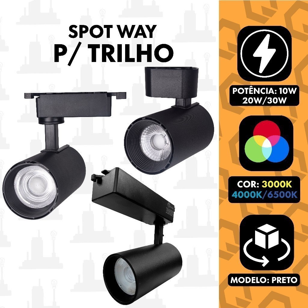 Spot Way Led Para Trilho Eletrificado 10w Preto 3000k/4000k/6500k