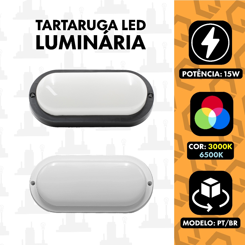 Luminária Tartaruga 15w Led Oval Bivolt Preto ou Branco Amarelo 3000K Branco 6500K
