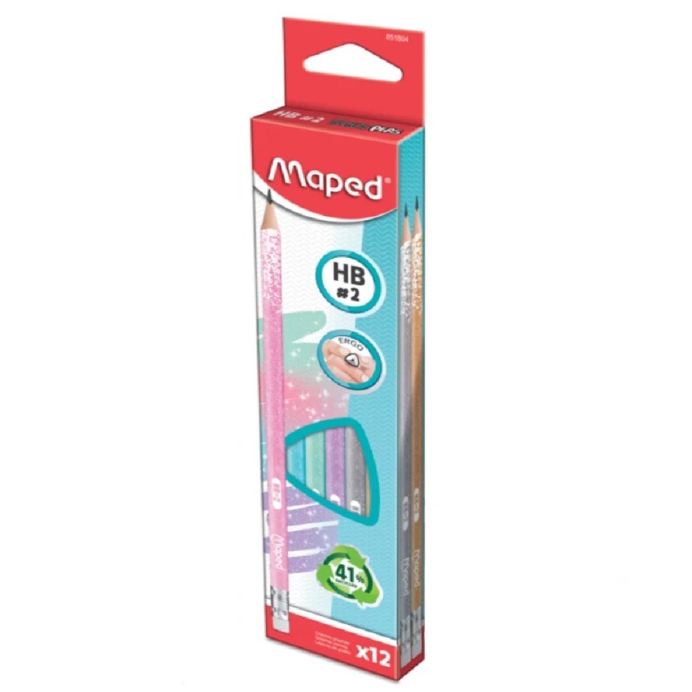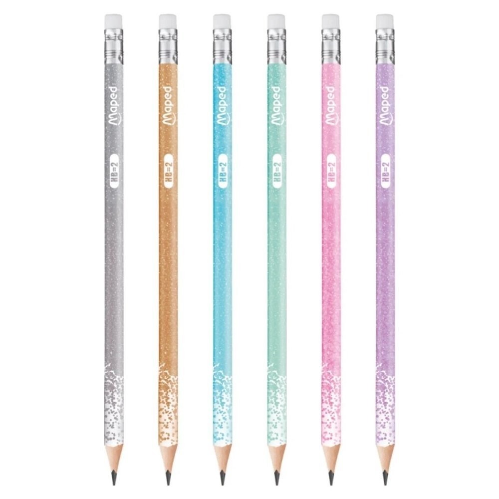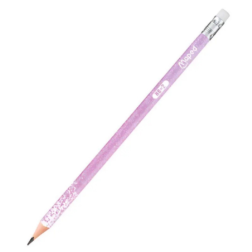 Lápis de Escrever Grafite HB Black Peps Glitter Com Borracha Caixa 12 Unidades Maped