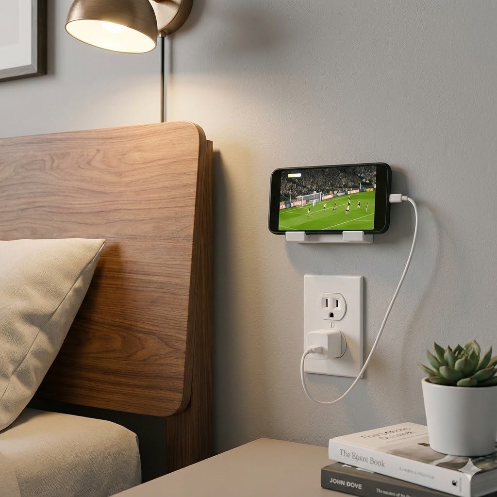 Suporte de Celular de Parede para Assistir e Carregar – Uso na Cozinha, Banheiro ou Qualquer Lugar