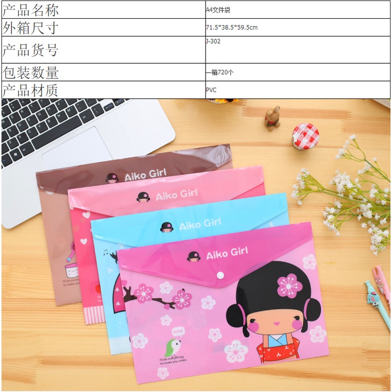[Nova Chegada] Sacos De Arquivo A4 Desenho Animado Suprimentos De Escritório De Negócios Snap Em PVC Caneta De Presentes Criativas