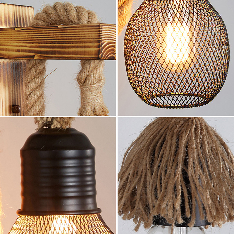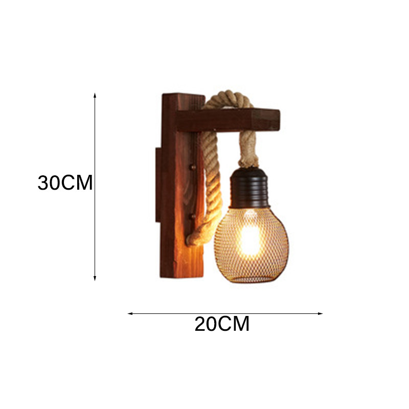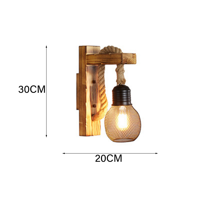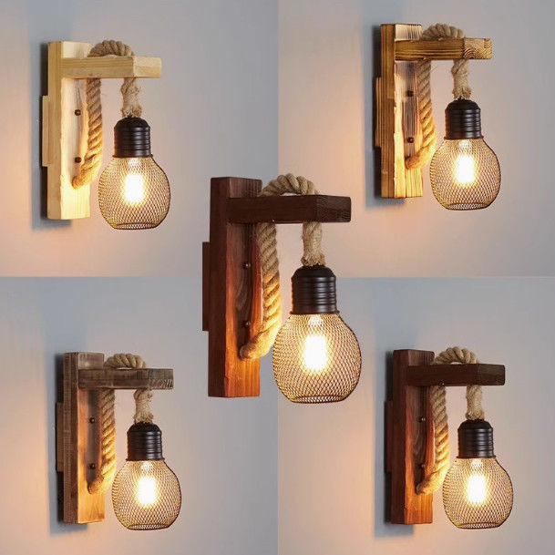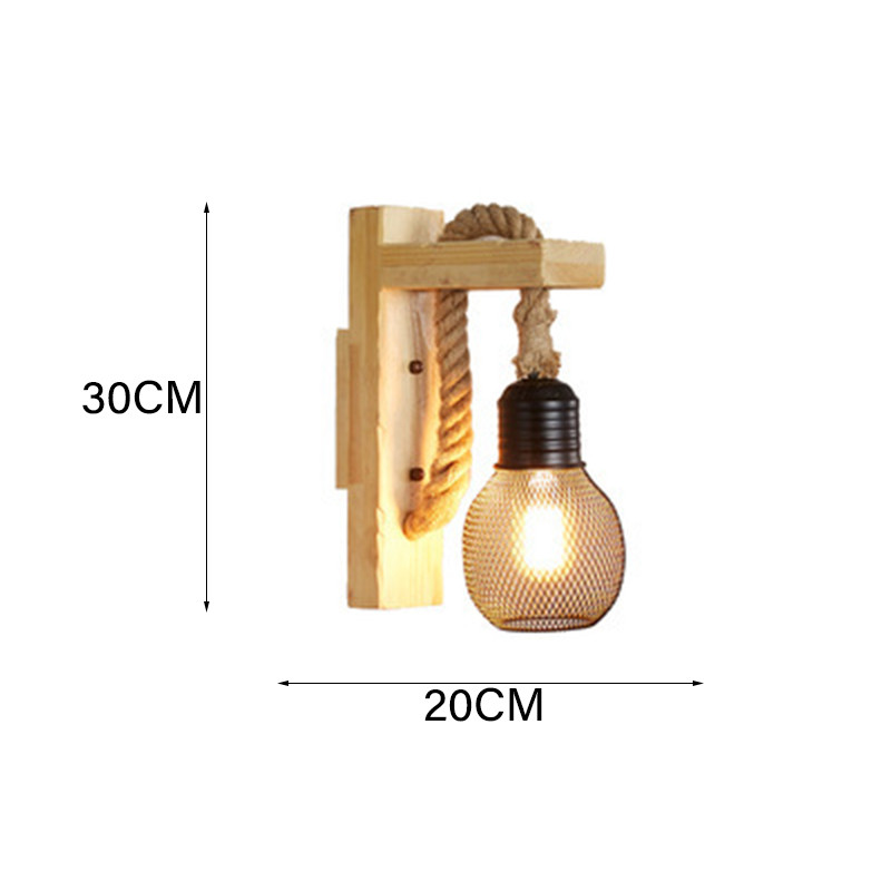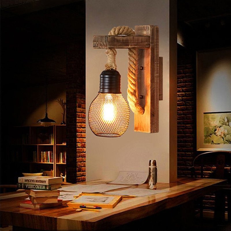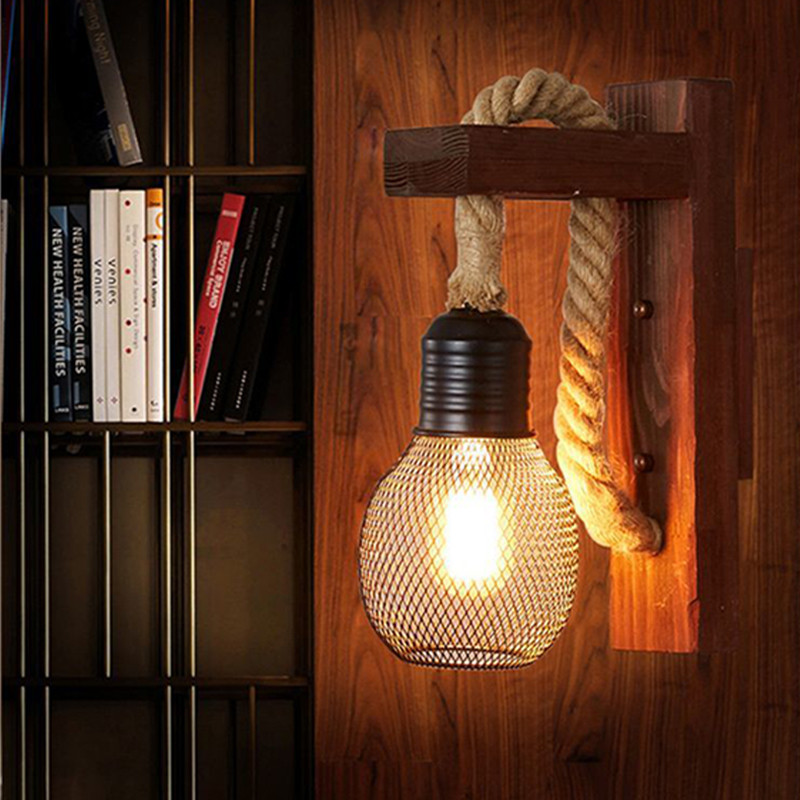 Retro Estilo Industrial Corda De Cânhamo Lustre Ferro Forjado Base Madeira Passarela Lâmpada Parede Casa Bar Café Decora