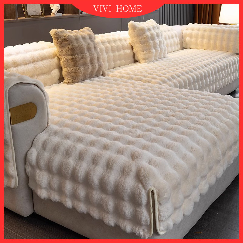 Capa De Sofá De Pelúcia De Coelho 1 2 3 4 Lugares Em Forma De L Almofada Grossa Protetor De Tecido Antiderrapante Toalha