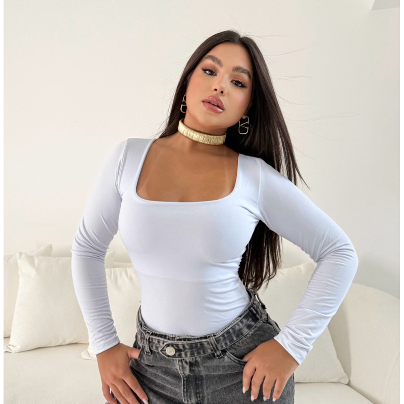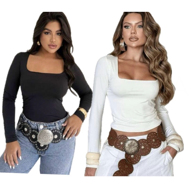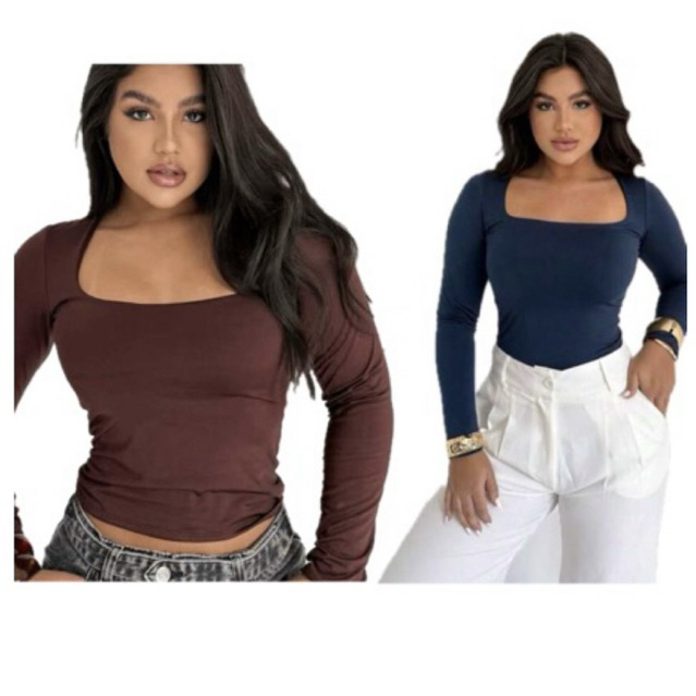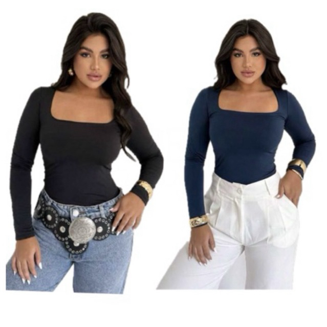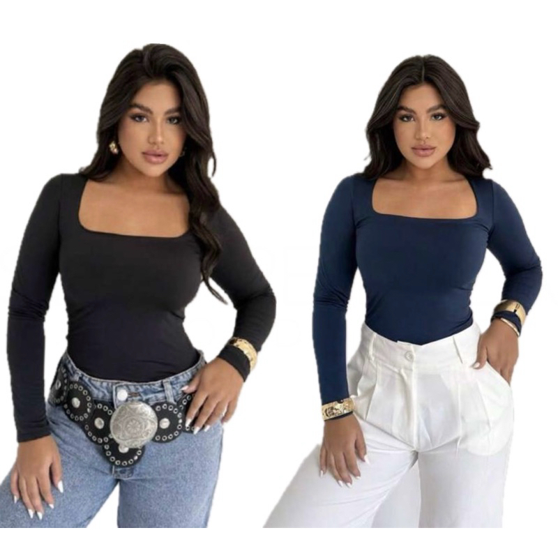 KIT 2 BLUSAS FEMININA MANGA LONGA SUPLEX COM TOQUE POLIAMIDA DECOTE QUADRADO MODA INVERNO SEGUNDA PELE BÁSICA