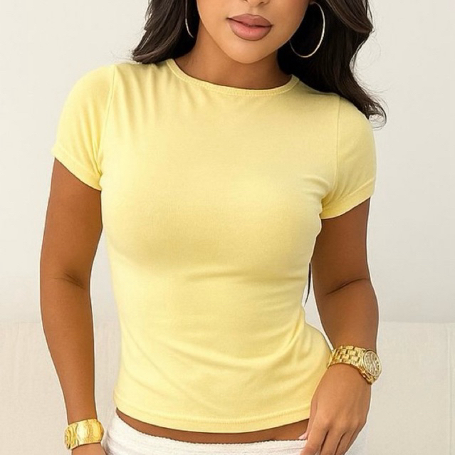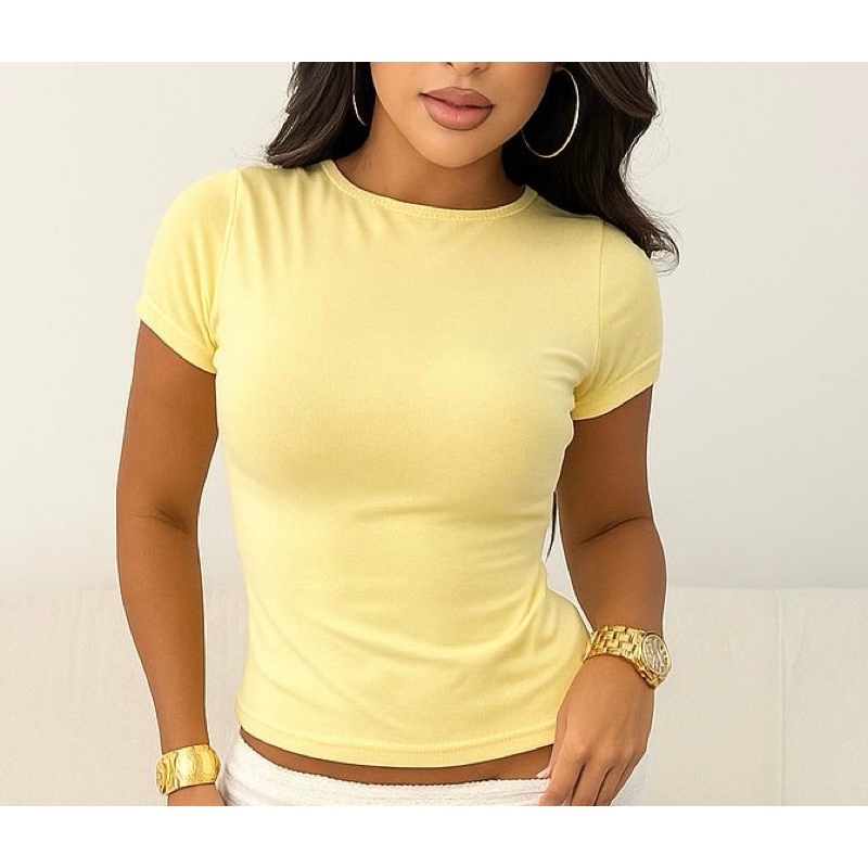 BLUSA BÁSICA FEMININA MANGA CURTA ACADEMIA FITNESS DIA A DIA CASUAL BABY TEE MODA VERAO CONFORTAVEL SUPLEX SLIM