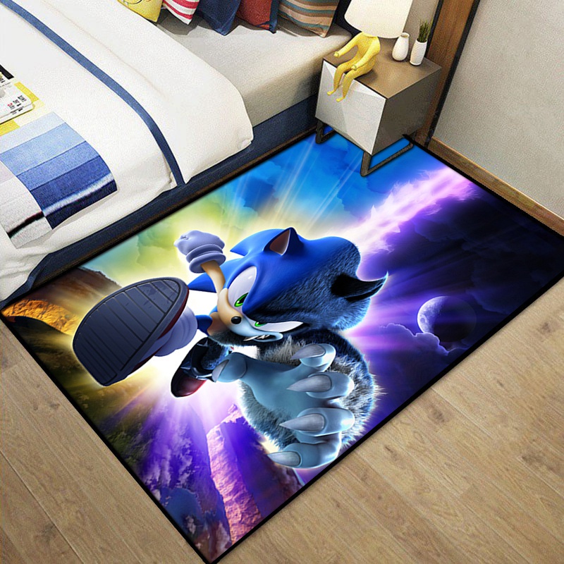 Porco-Espinho Personalizado Tapete Sonic Anime Sala De Estar Quarto Crianças Cabeceira De Piso Doméstico Desenho Animado Baía Máquina De Janela Lavável Jogo Para Pés Porta