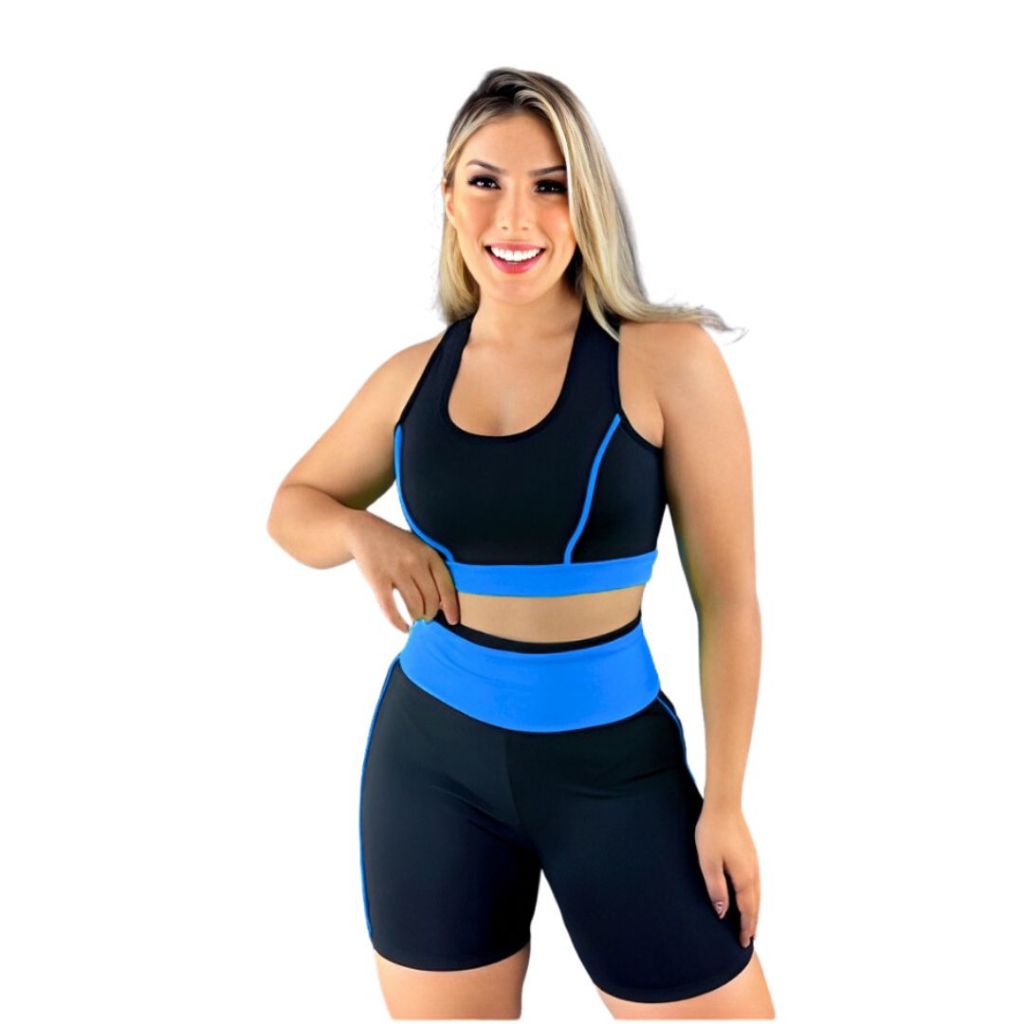 Conjunto de academia Top + Short ciclista Roupa fitness suplex premium