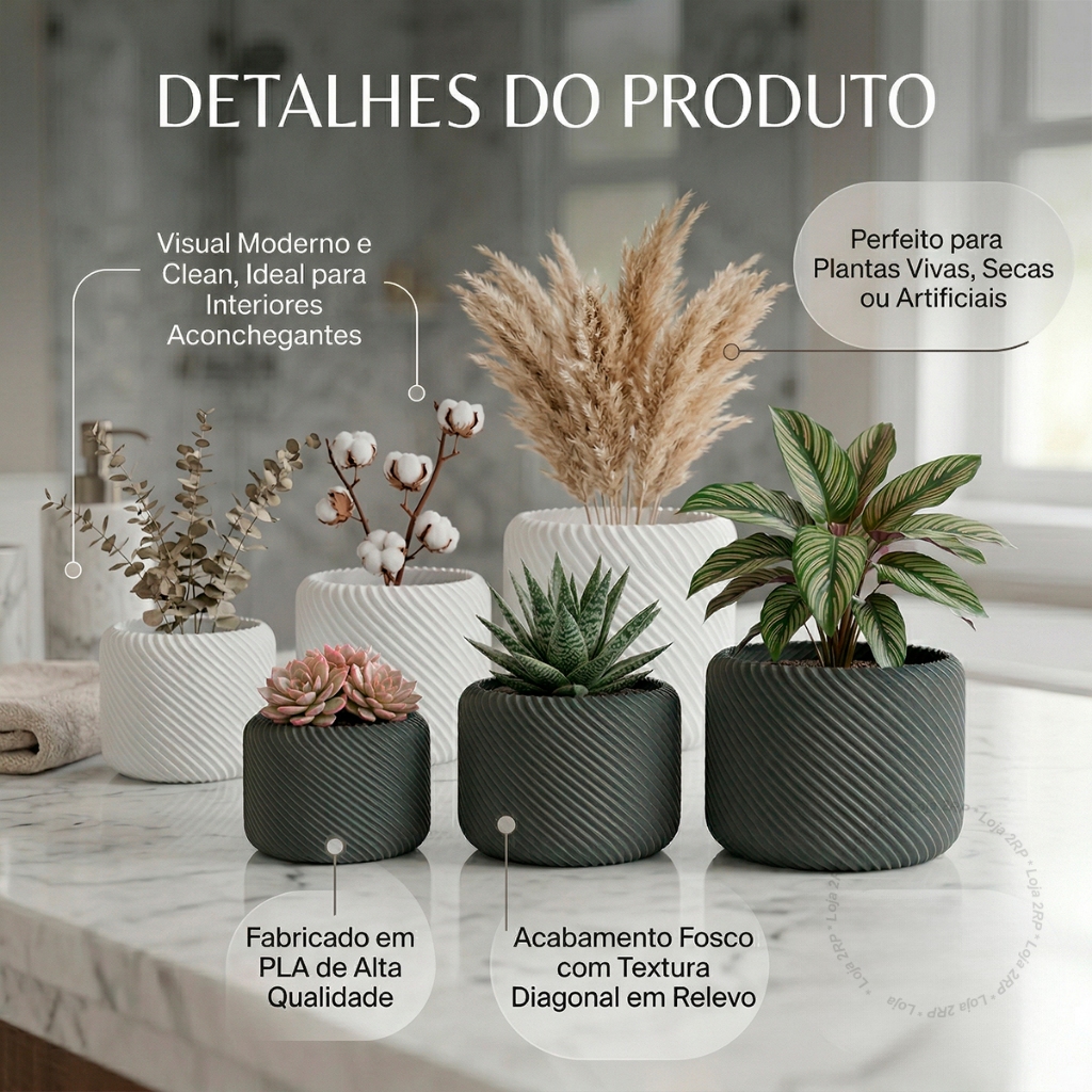 Kit Vaso Planta Decorativo Diagonal Design Minimalista Moderno Decoração Casa Elegante