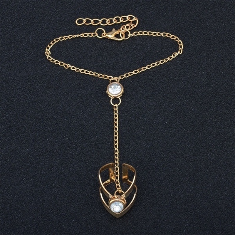 Pulseira De Corrente De Elos Incrustados De Rhinestone Vintage Com Anel Geométrico De Seta Oca Dedo Para Presentes De Jóias Femininas