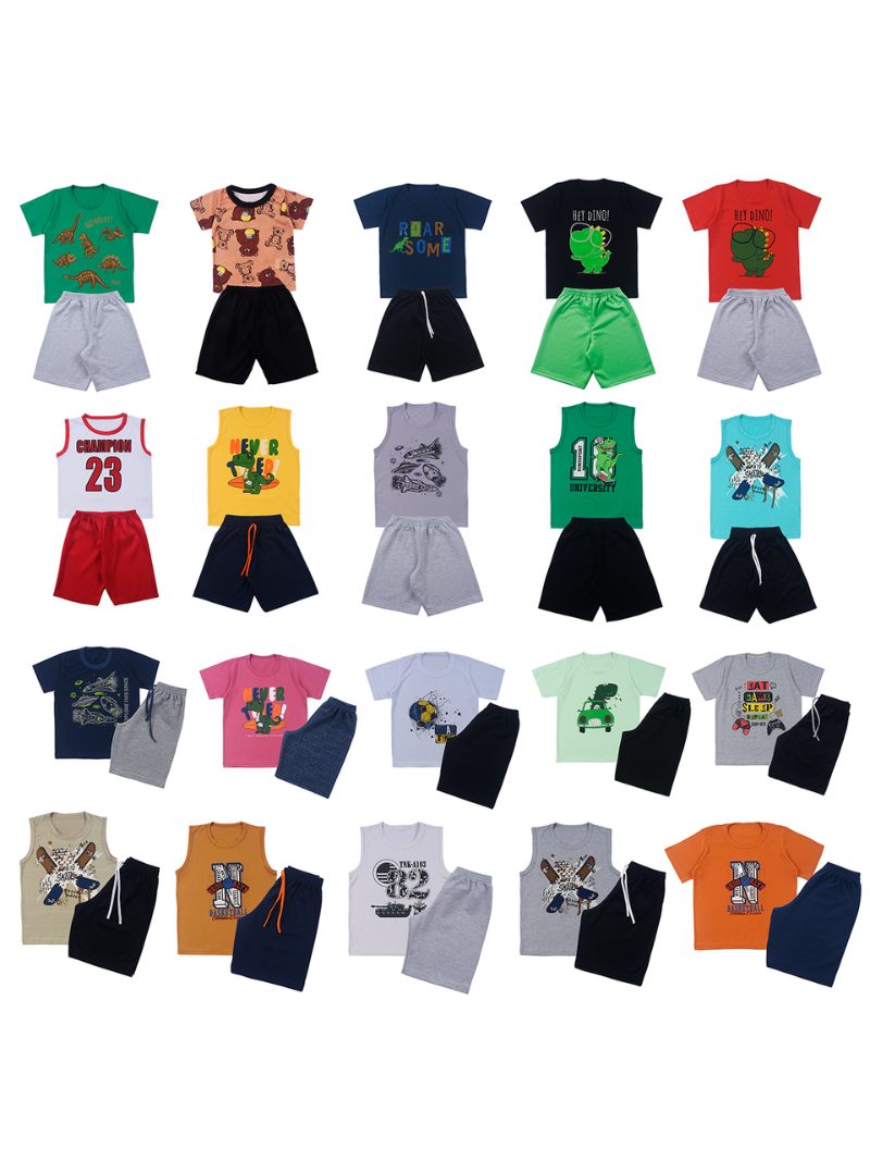 Kit Sortido 10 Peças De Roupas Infantil Menino - 5 Camiseta/Regata + 5 Shorts - Promoção