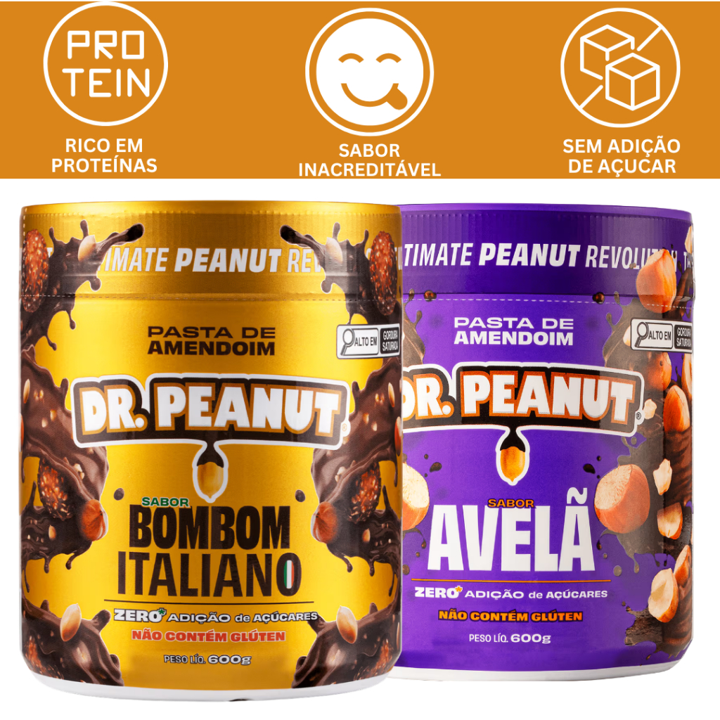 KIT 2 PASTA DE AMENDOIM ZERO ADIÇÃO DE AÇUCAR SEM GLÚTEN 600G - DR. PEANUT