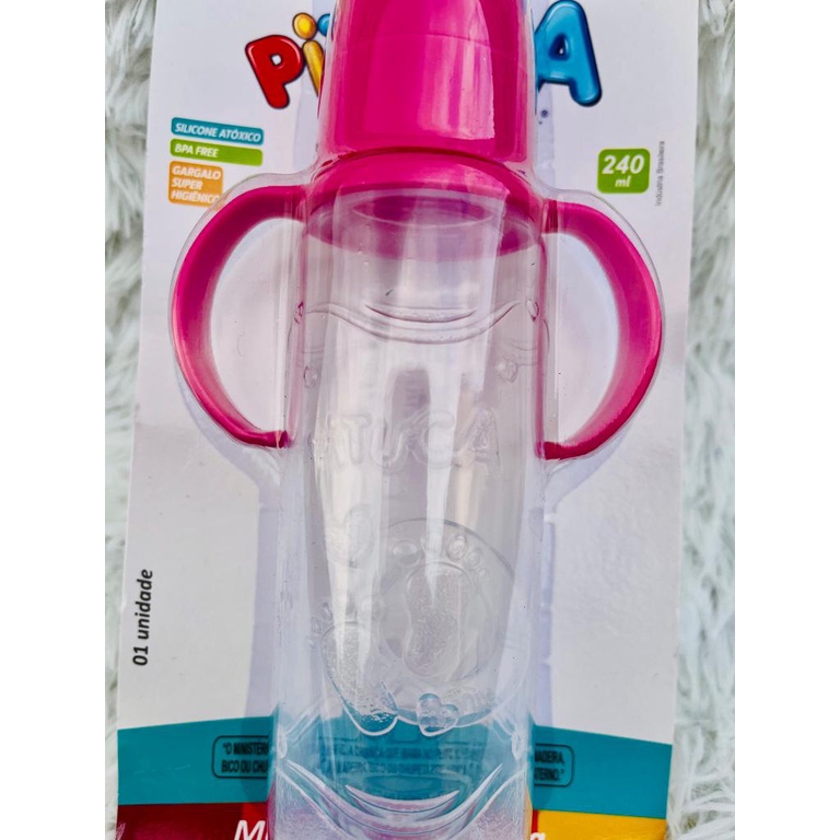 Mamadeira Pituca 240ml Bico Achatado c/ Alça