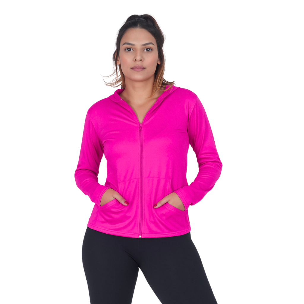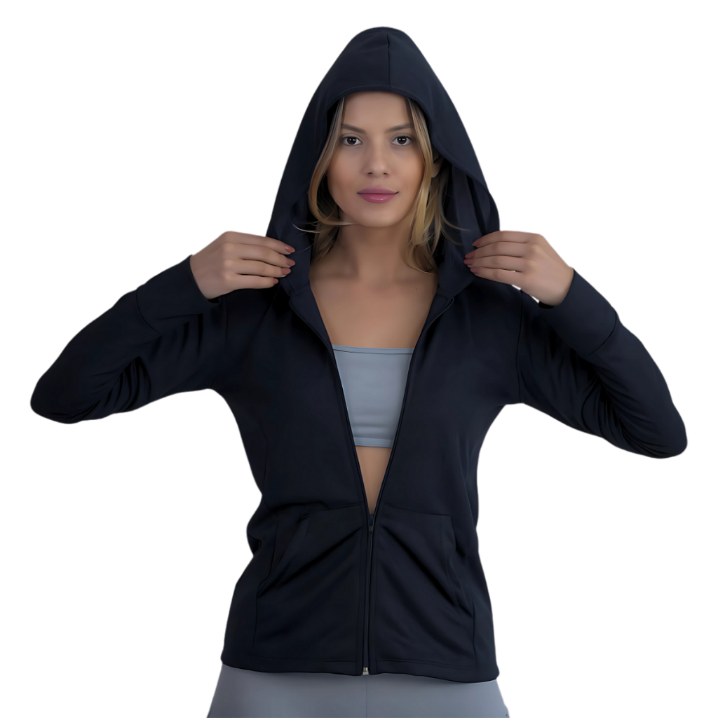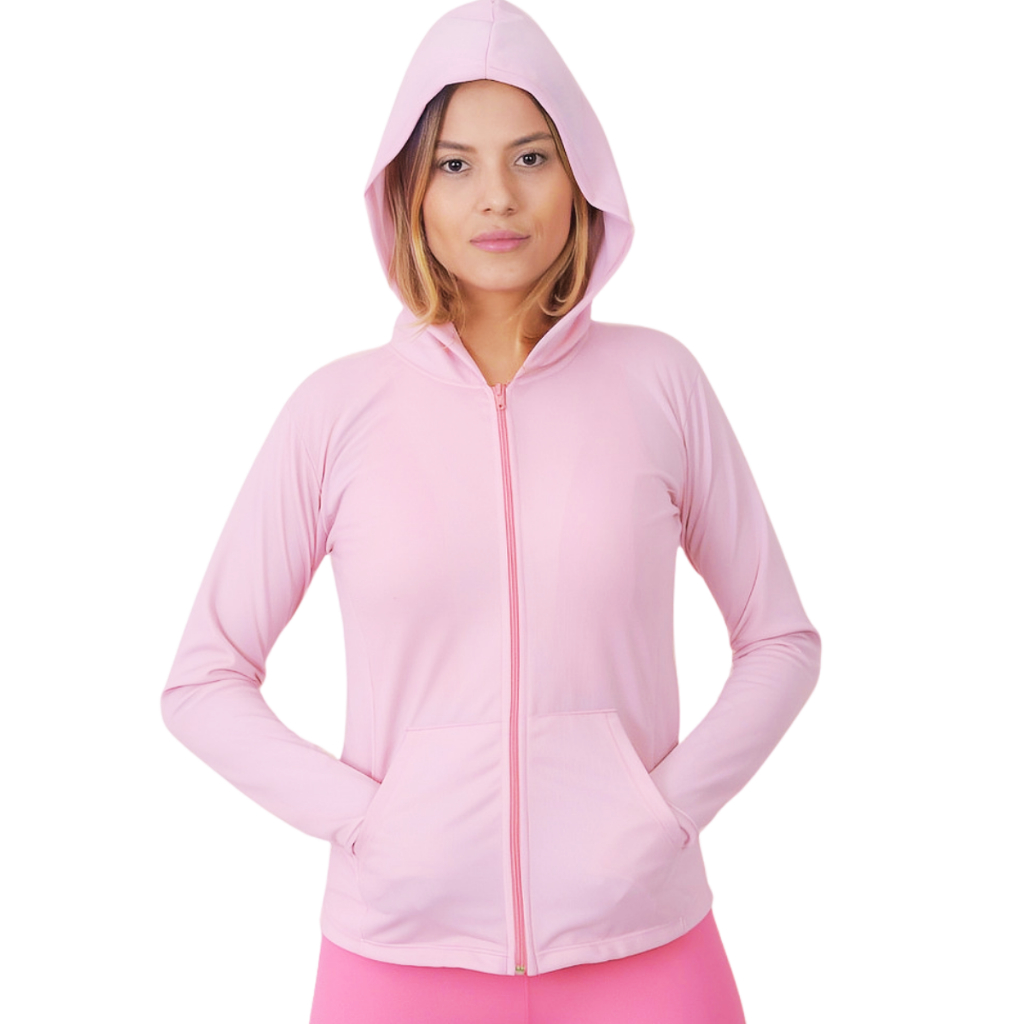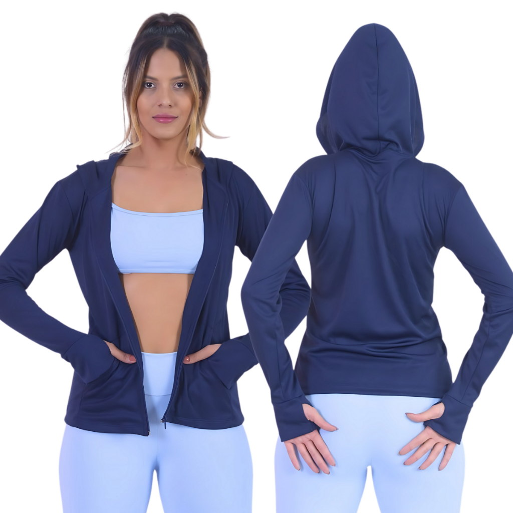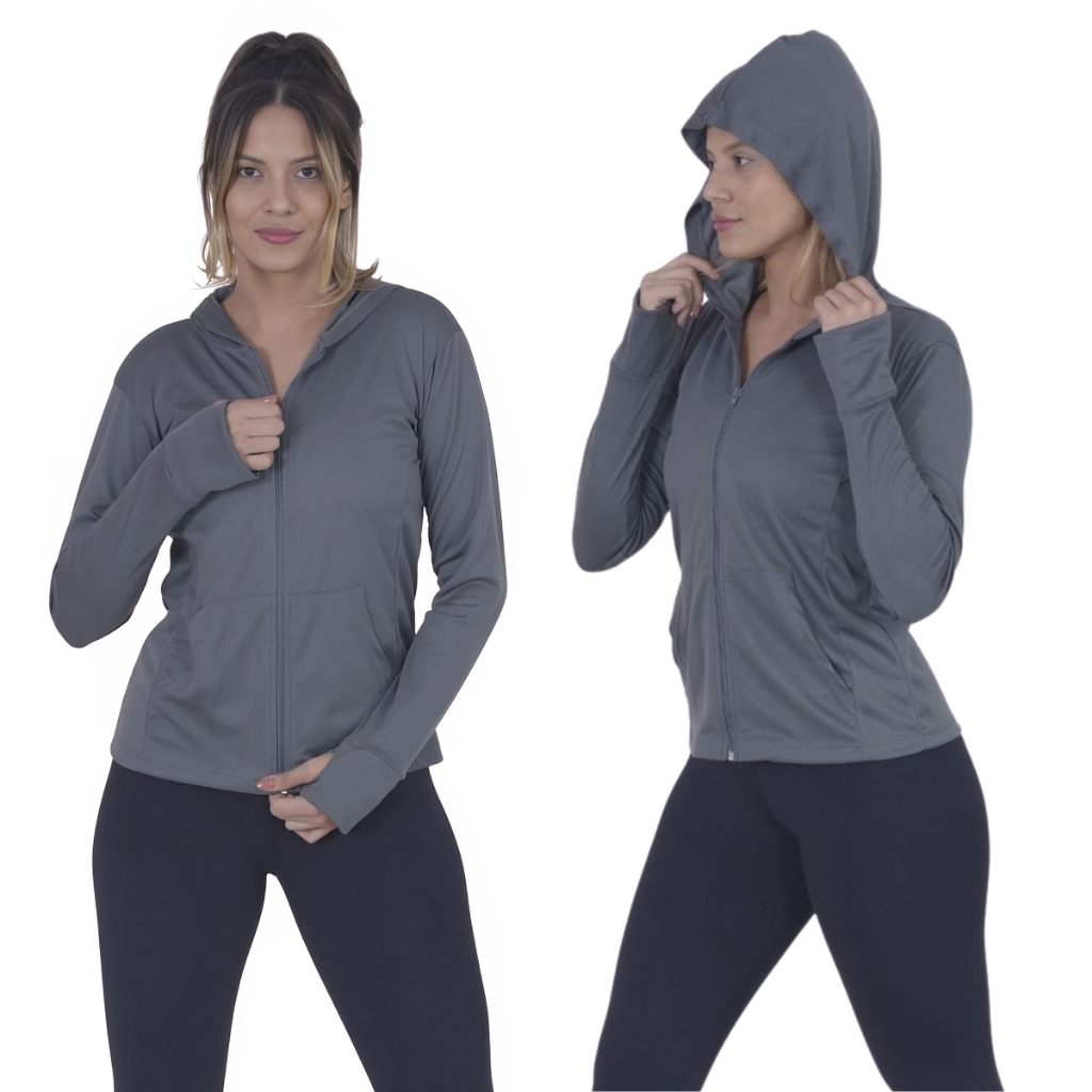 Jaqueta Casaquinho Feminino com Ziper e Capuz Dryfit Academia Proteção Solar