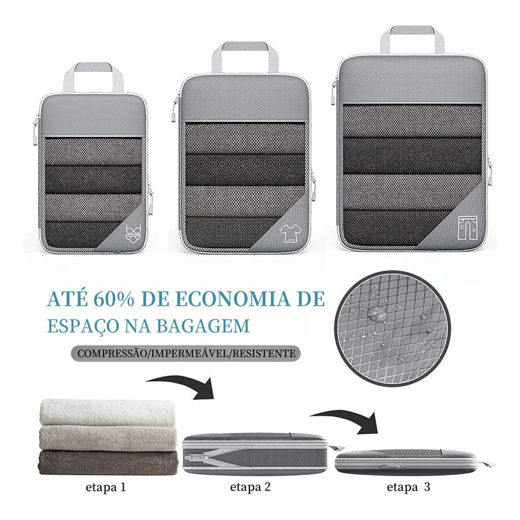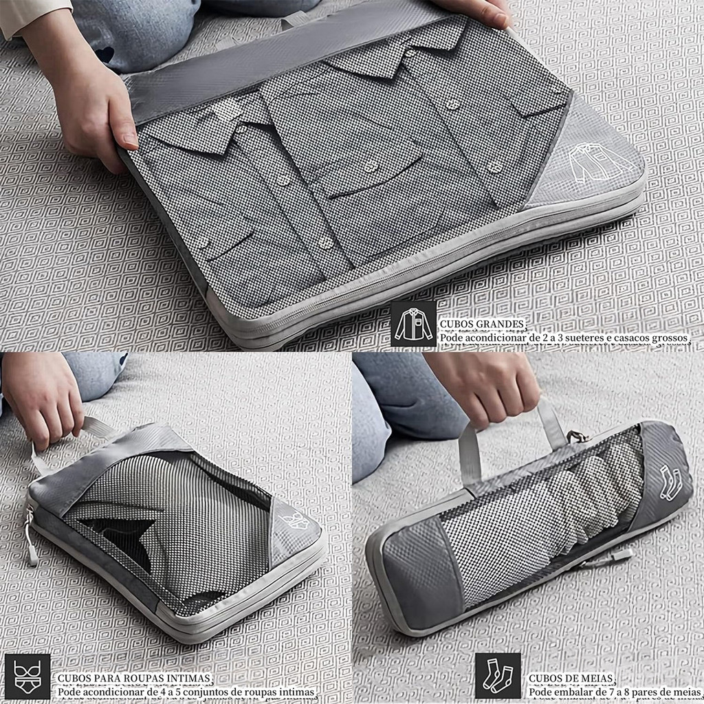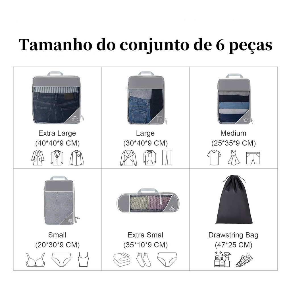 Conjunto de Cubos de Embalagem de Compressão - Nylon Premium, Organizador de Roupas e Acessórios para Viagem, 3/6 Peças
