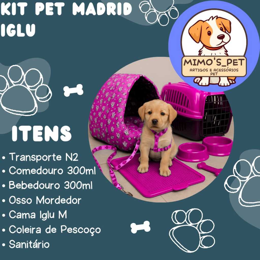 Kit Para Cachorro Caminha Pet Iglu Caixa De Transporte Pequeno Sanitário Canino