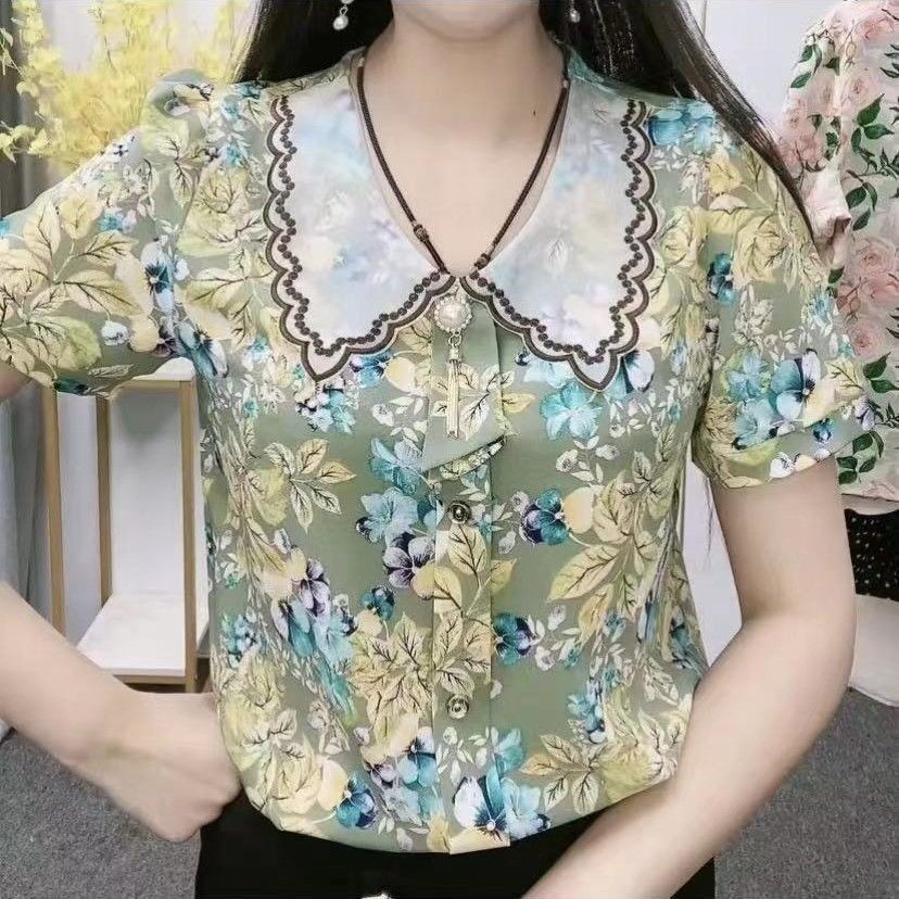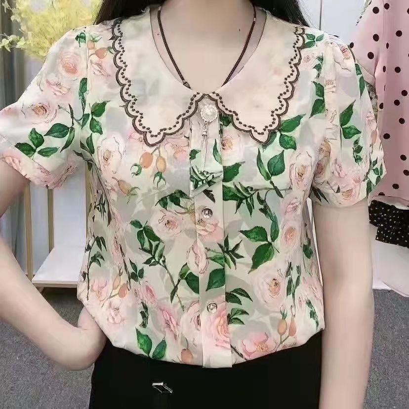[Entrega 24horas] Novas Blusas Floral Chiffon De Verão Senhoras Para Mulheres Mais Tamanho Moda Coreana Impressa