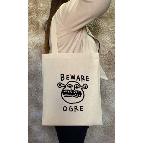 Bolsa Sacola Ecobag Ecologica algodão estampa BEWARE OGRE CUIDADO OGRO