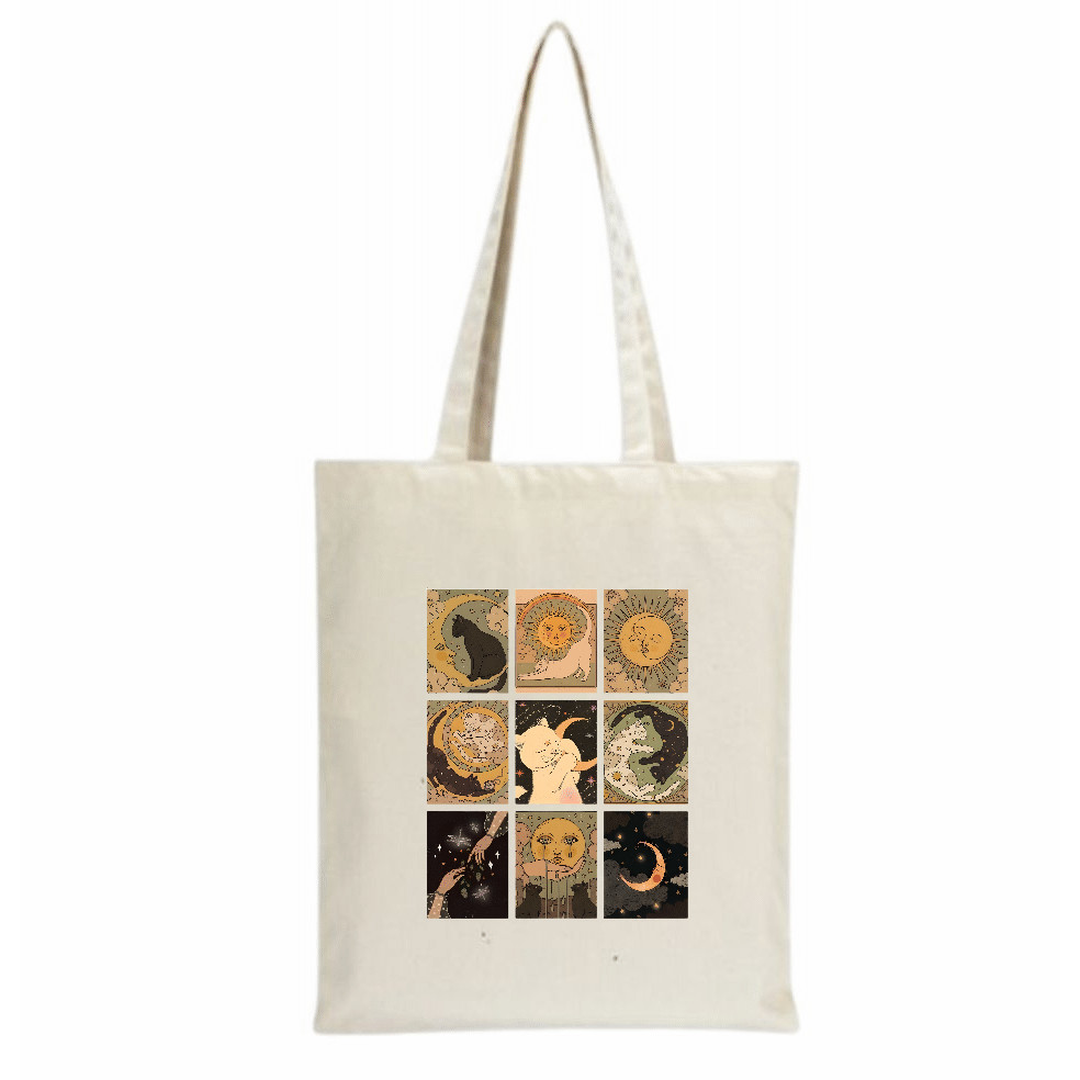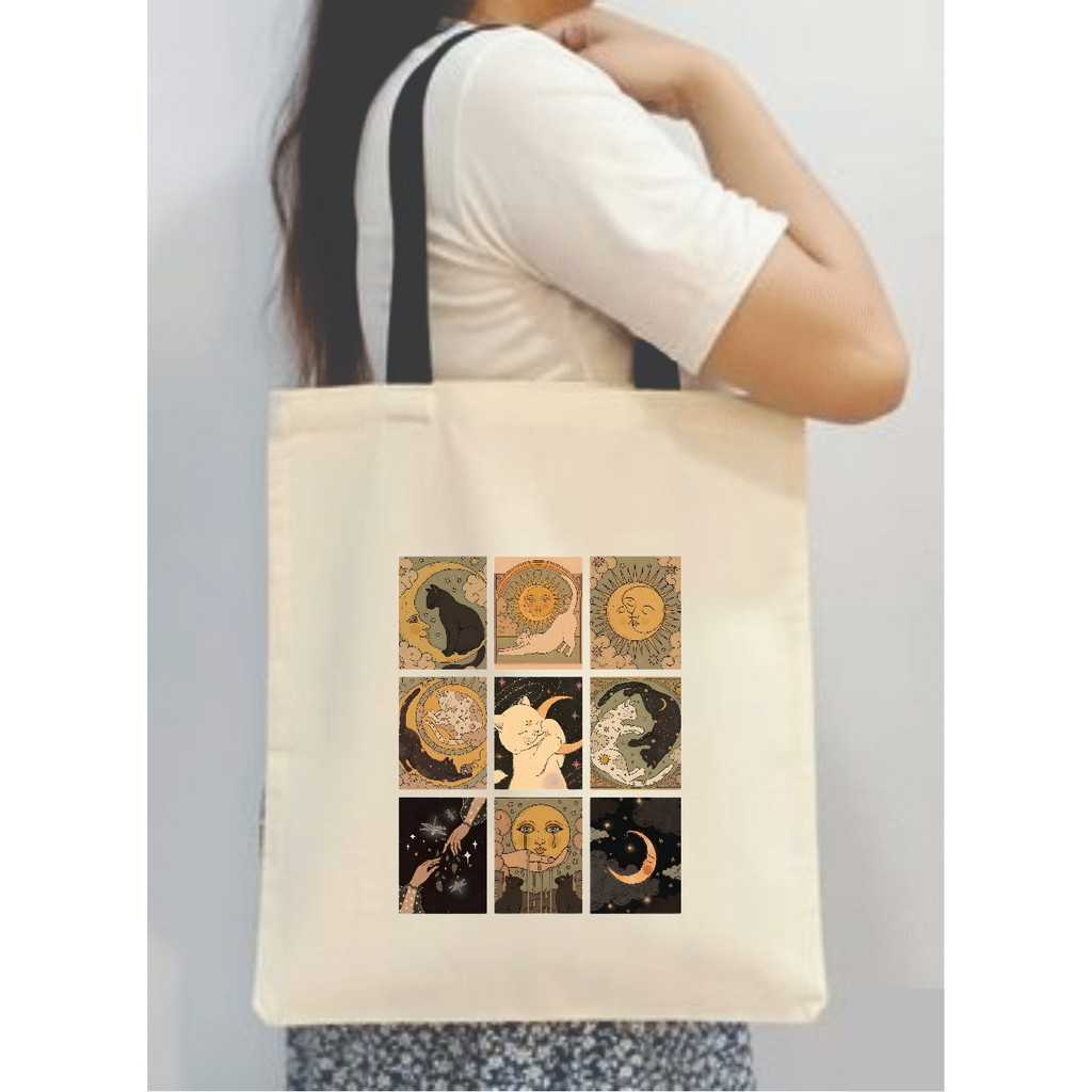 Bolsa Sacola Ecobag Ecologica algodão estampa Tarô do Cosmos Gato Estelar Sol e Lua