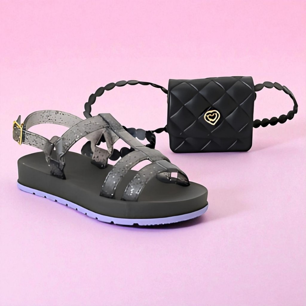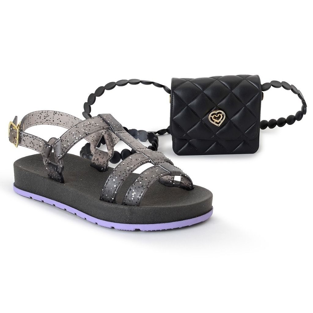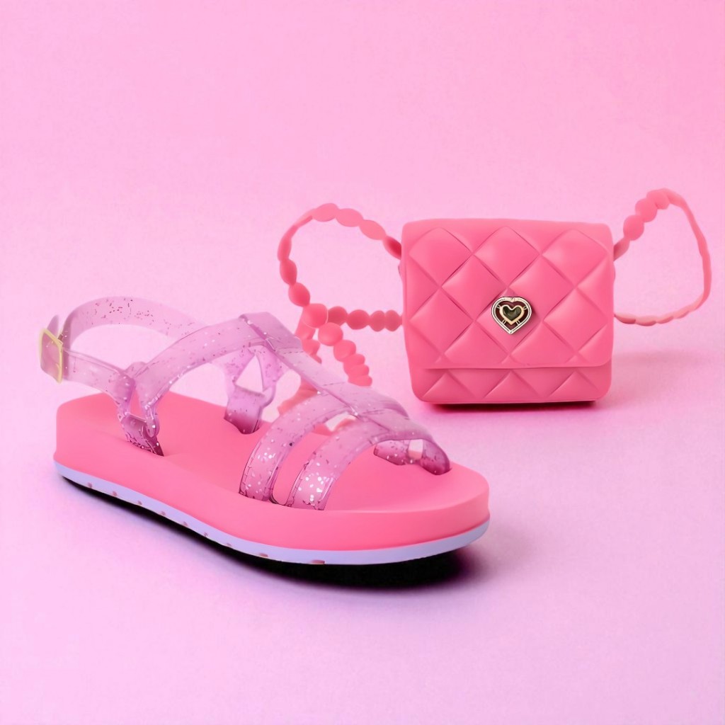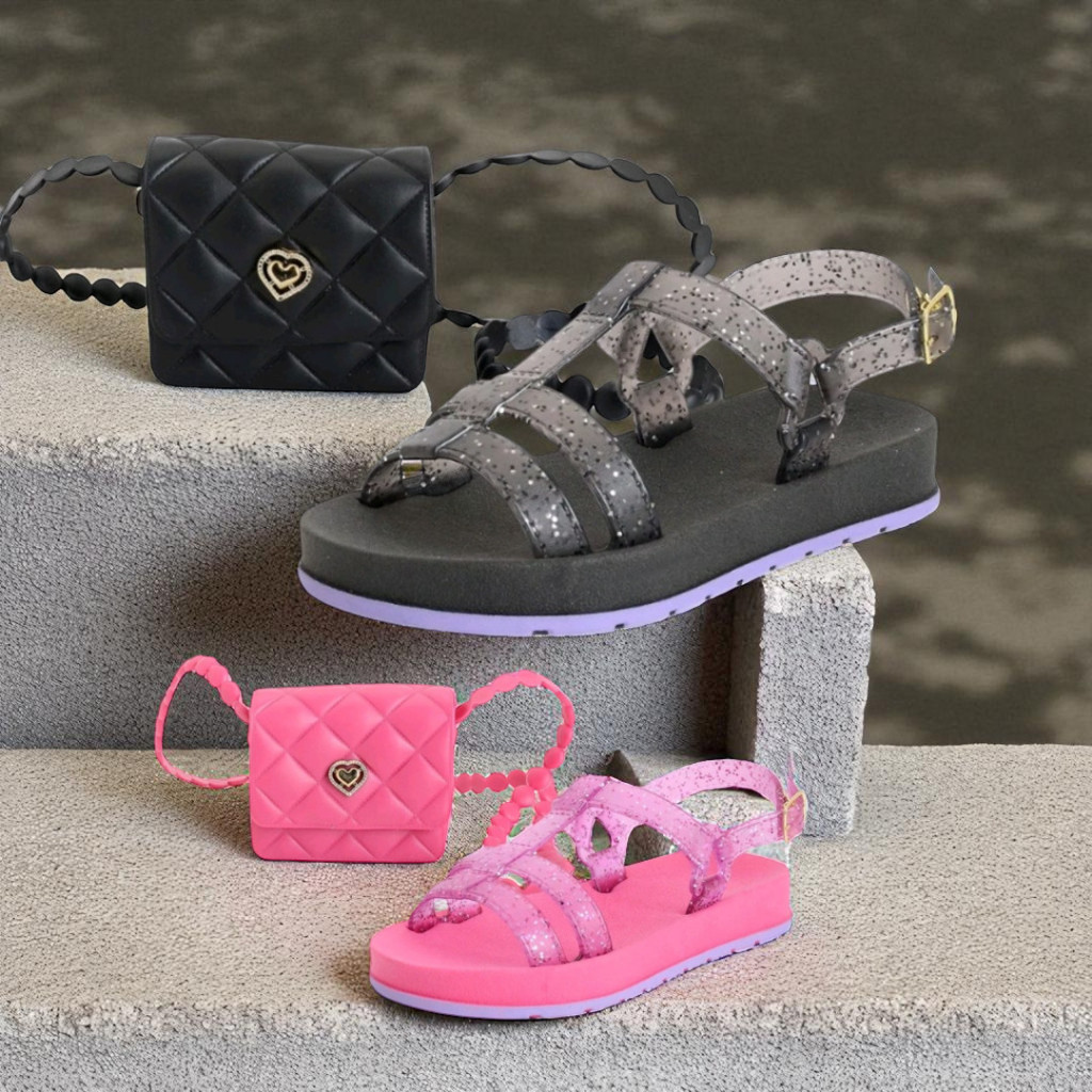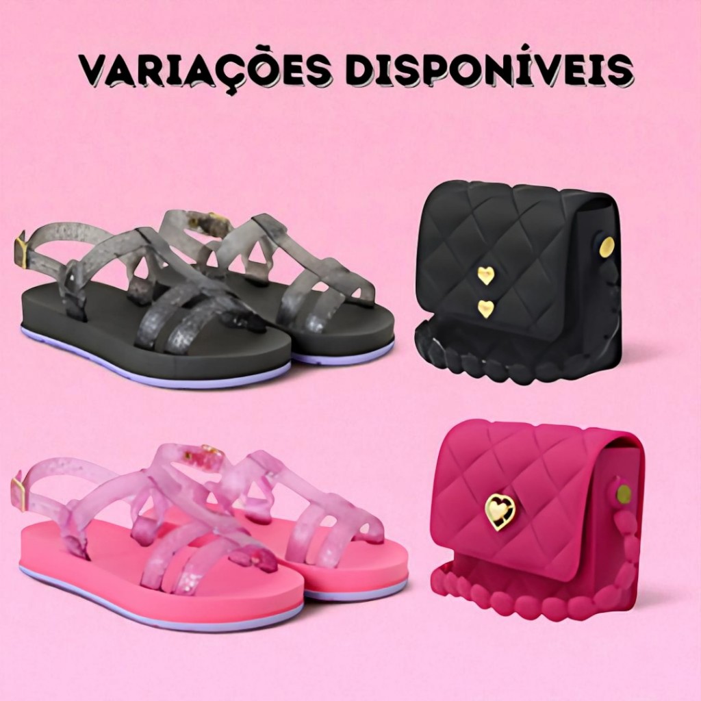 Kit Infantil Feminino – Papete com Calce Fácil e Bolsinha Estilosa nas Cores Rosa e Preto