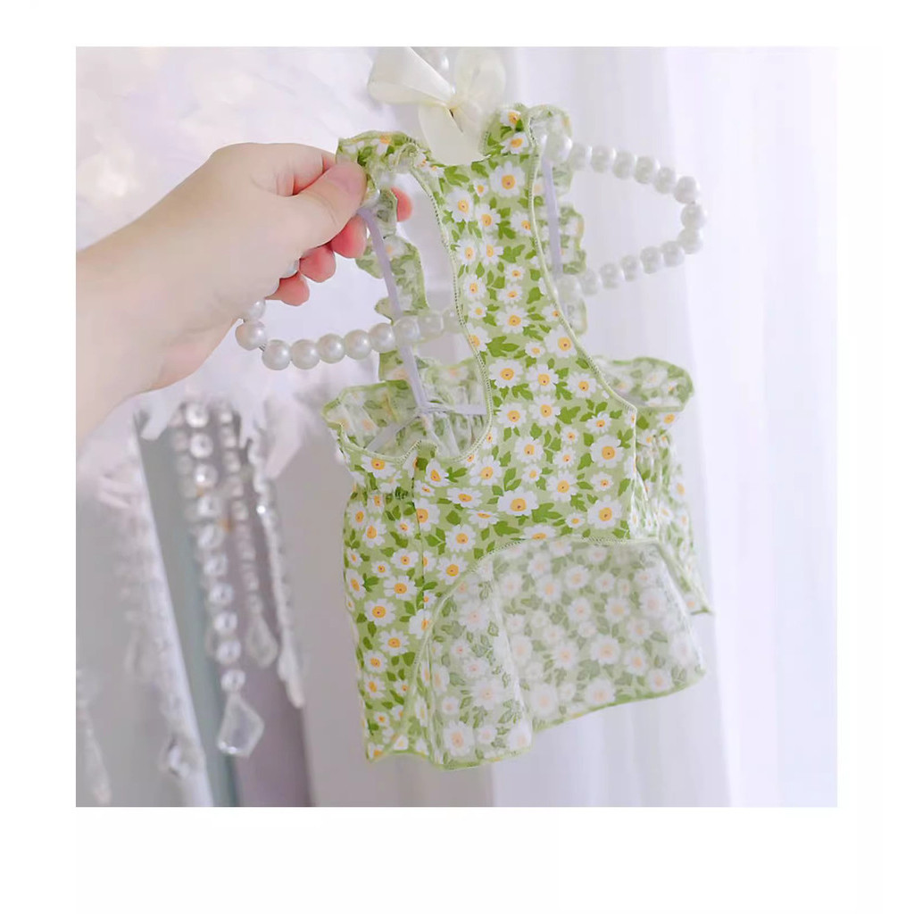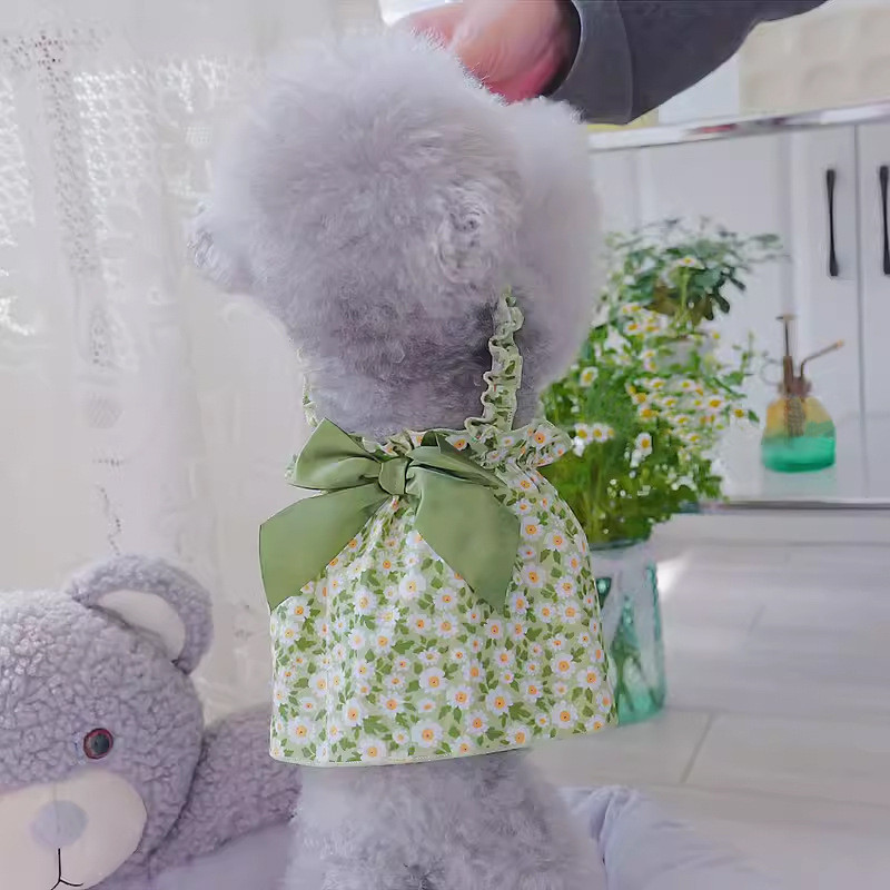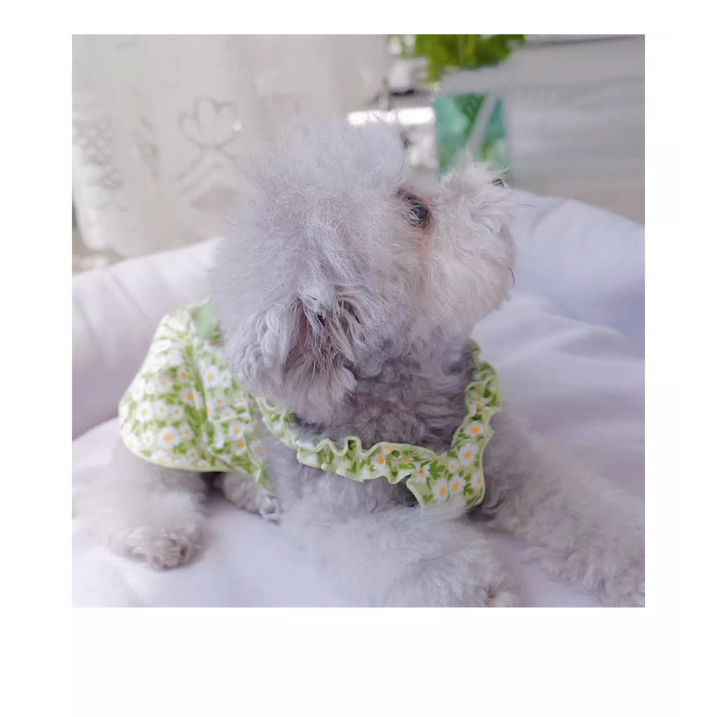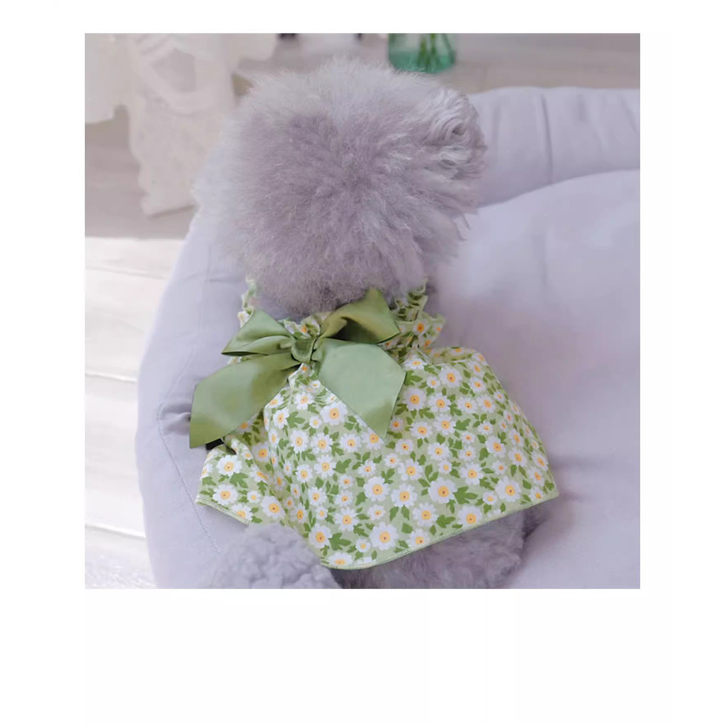 Vestido De Cachorro Para Shih Tzu Daisy Print Saia De Princesa Bonita Com Gato Bow Teddy Bichon Verão Animal De Estimaçã