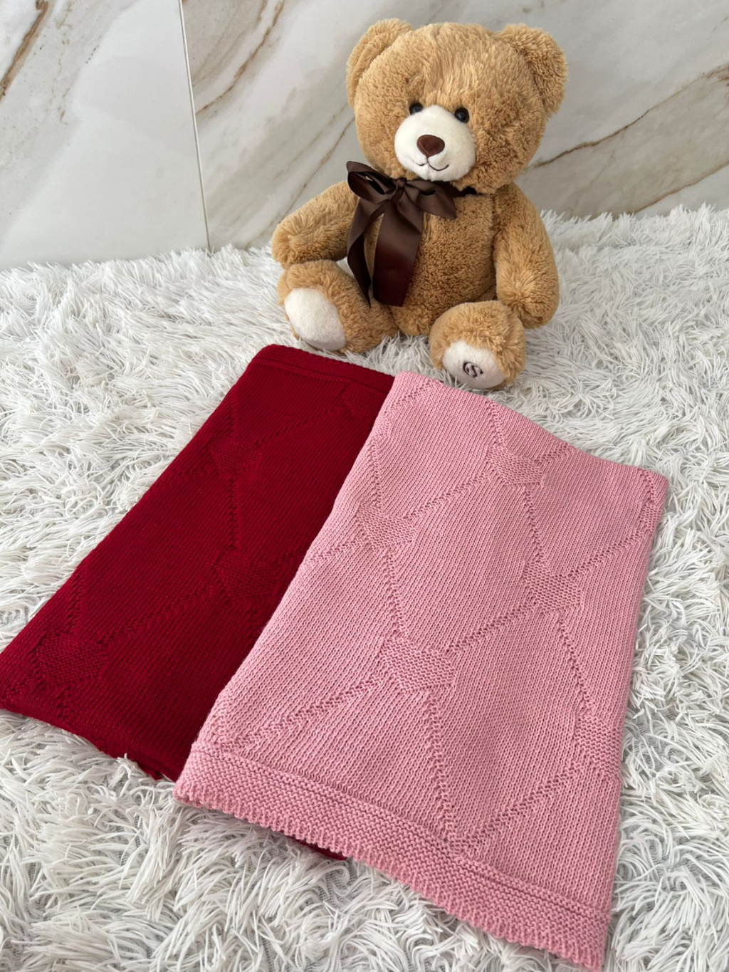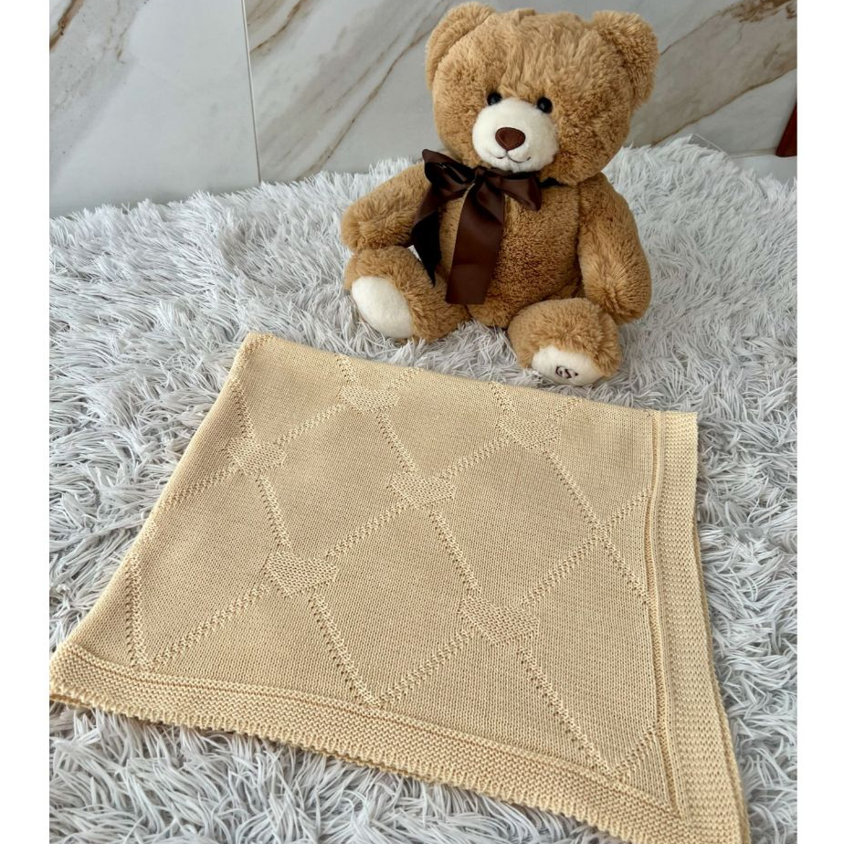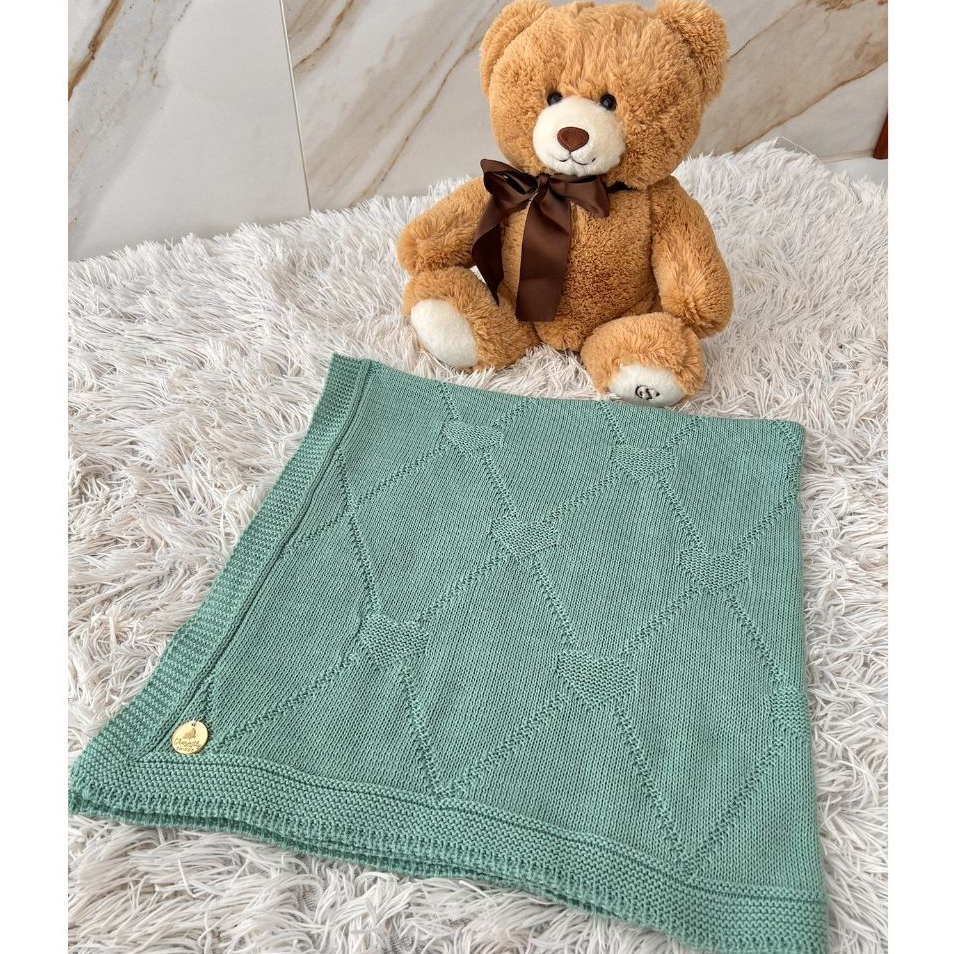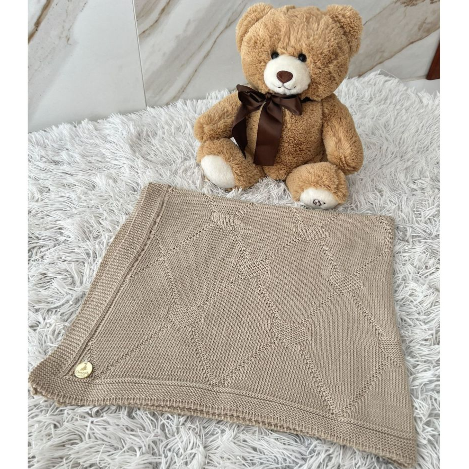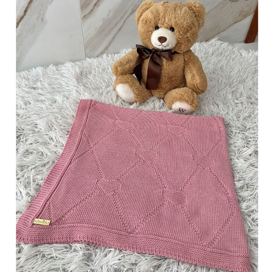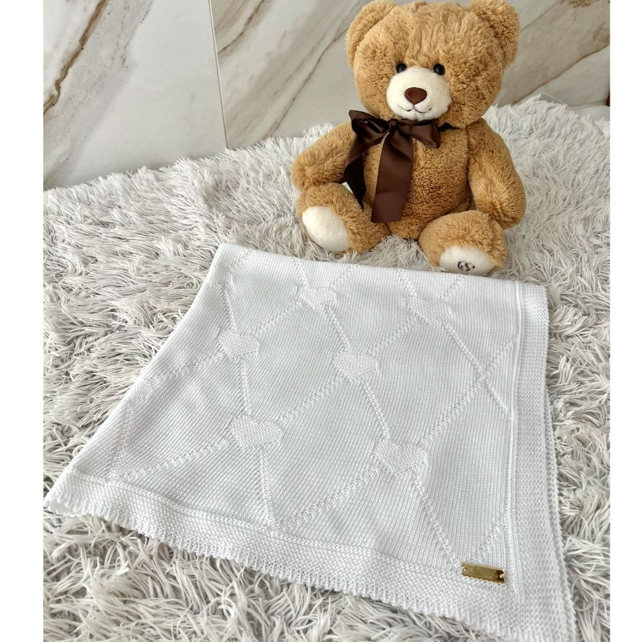 Manta Tricot Bebê Coração Saída de Maternidade Luxo Cobertor Recém Nascido Menina Menino