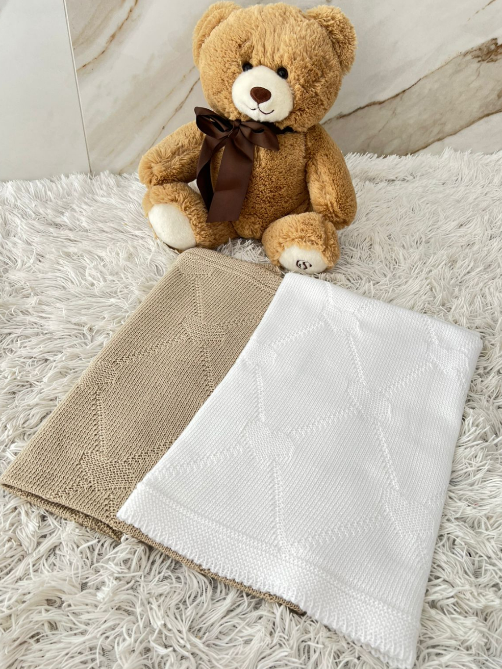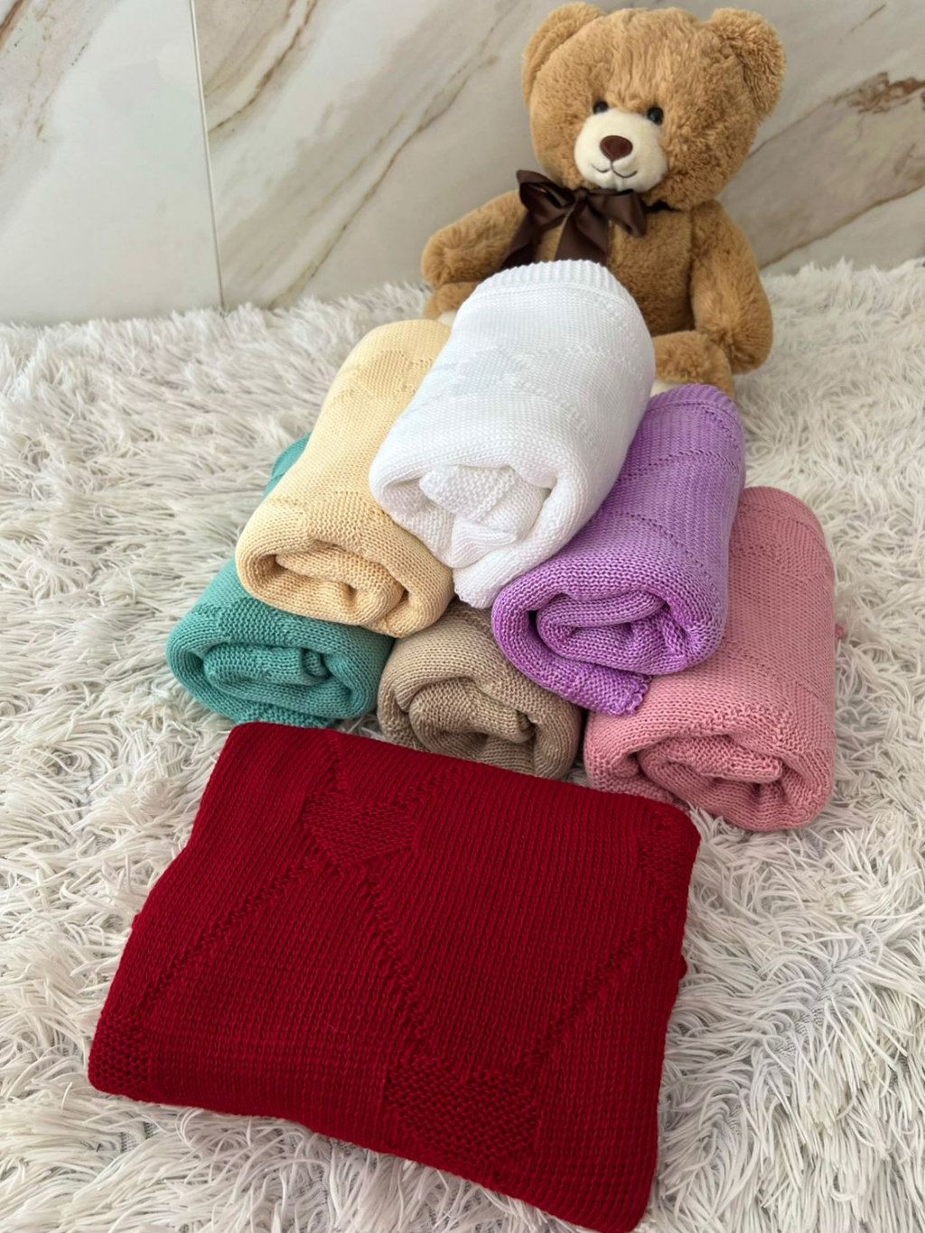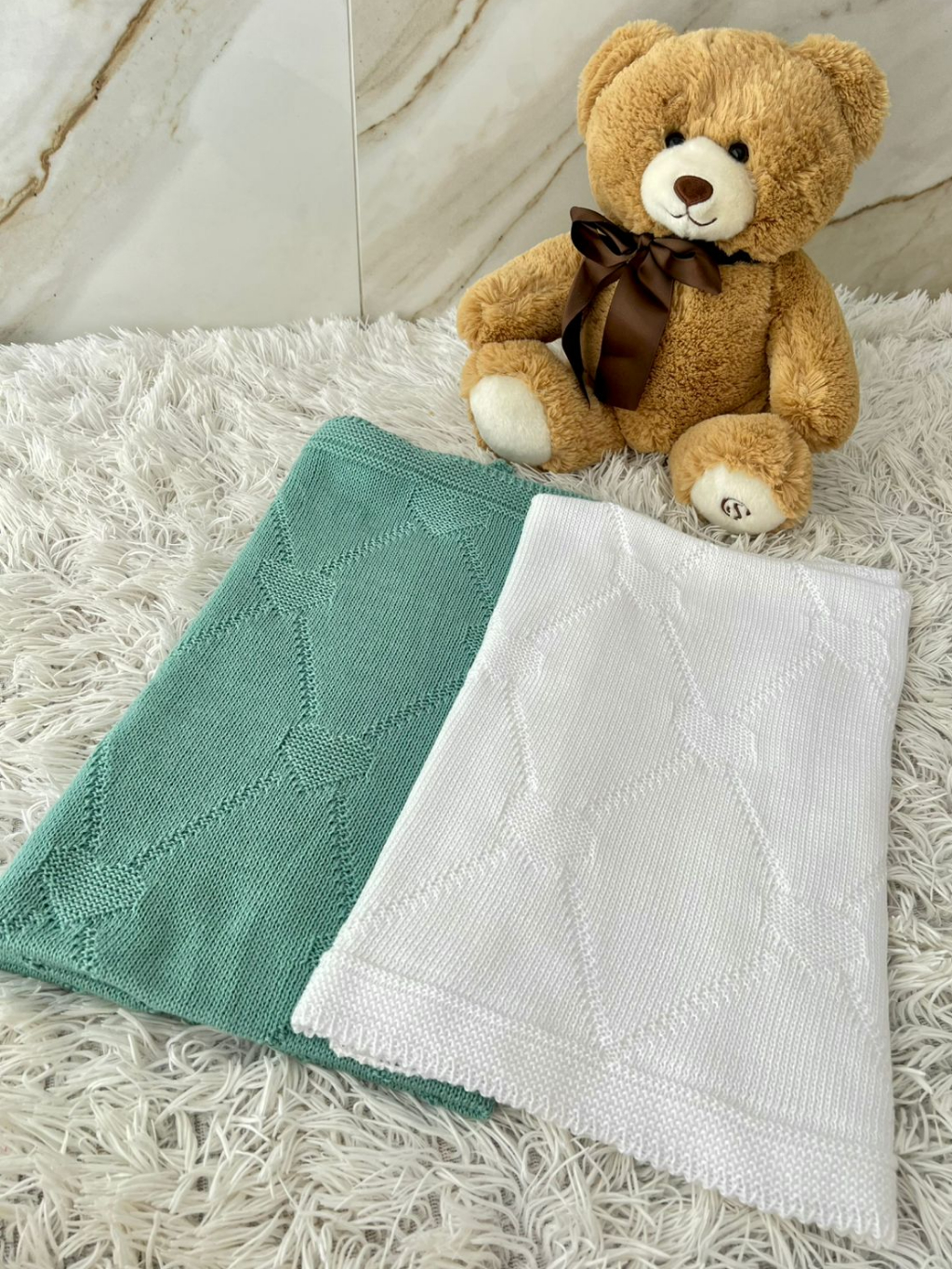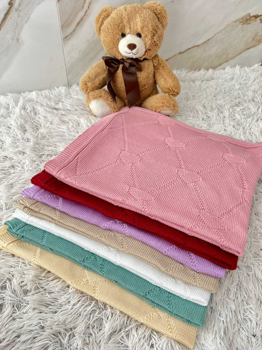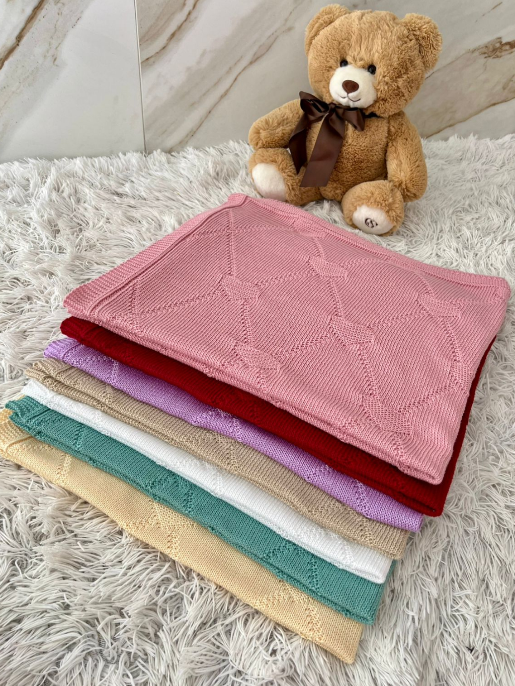 Manta Tricot Bebê Coração Saída de Maternidade Luxo Cobertor Recém Nascido Menina Menino