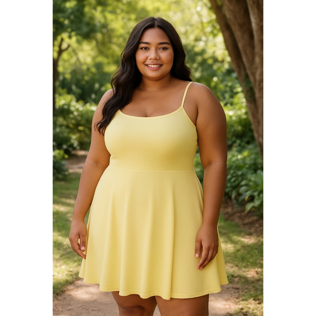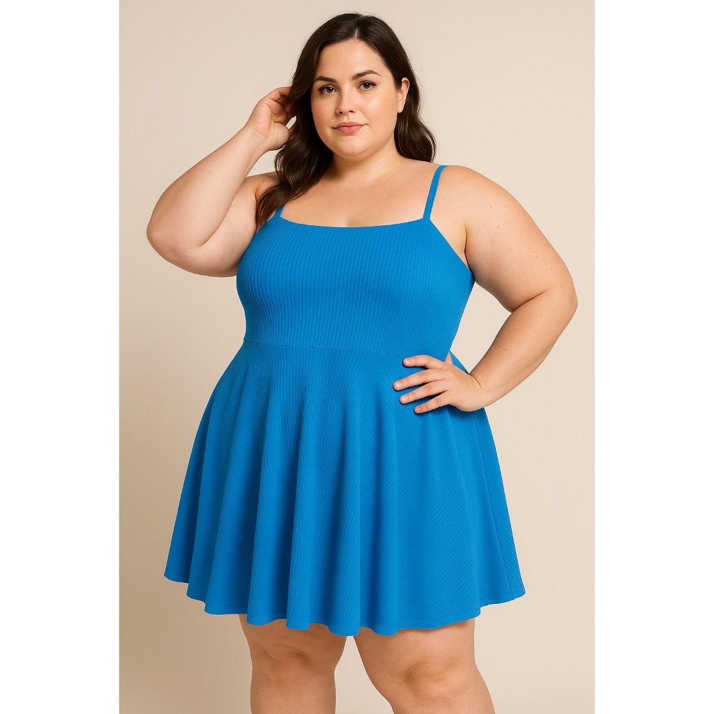 Vestido Feminino Plus Size Godê Canelado Alça Rodado Vestido Moda Feminina