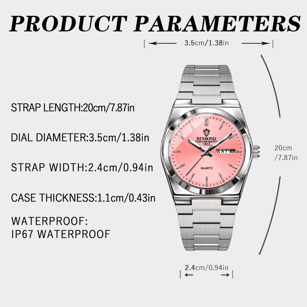 BINBOND B103 Relógio De Quartzo Feminino De Negócios À Prova D'água Luz Noturna Calendário Relógios Femininos Da Moda-1