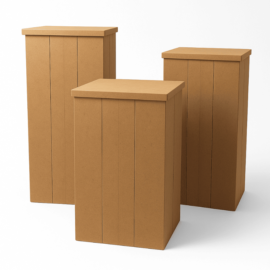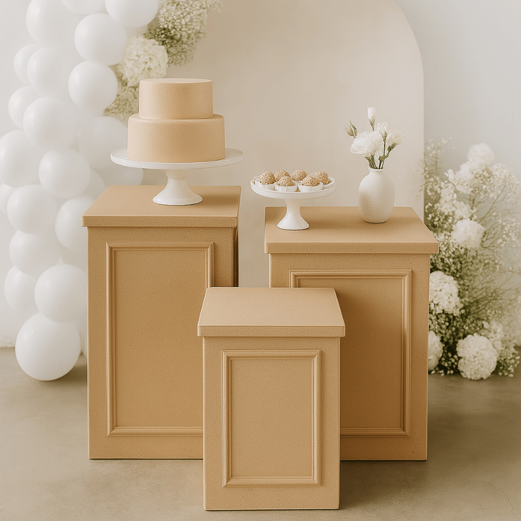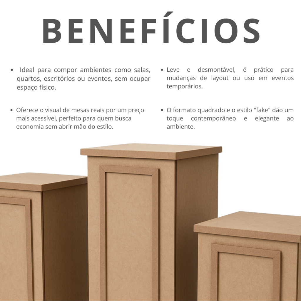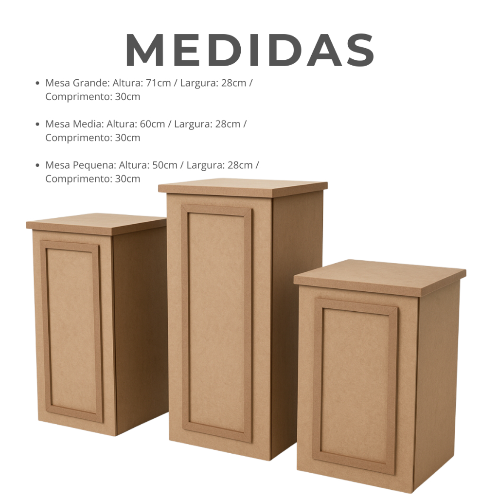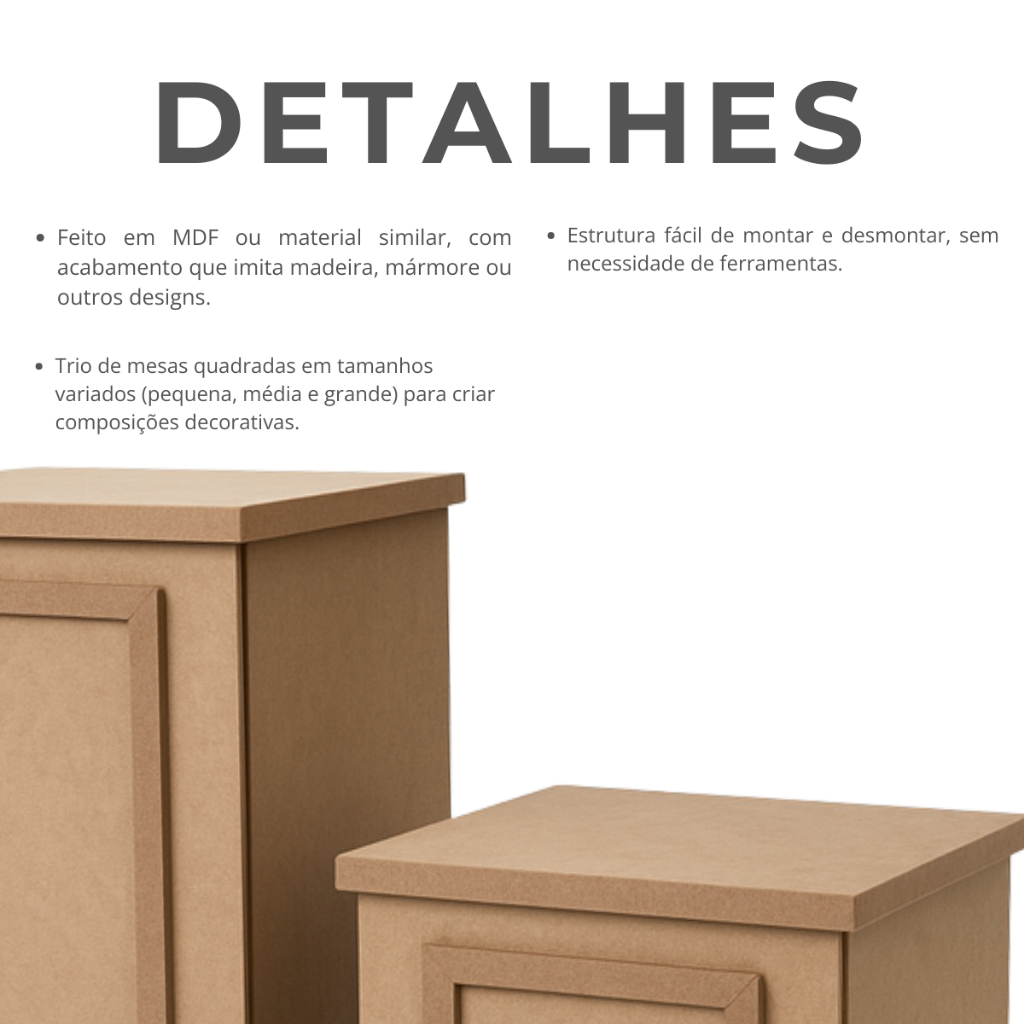 Trio De Mesas Para Festa Cubo Desmontável Em Mdf Cru